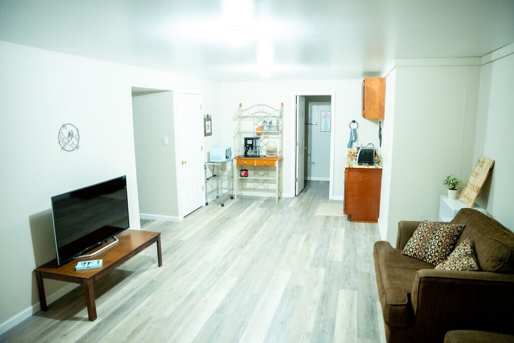 Rent then entire walk-out basement w/ private entry, in-unit washer/dryer, and kitchenette w/ refrigerator, toaster oven, and hot plate. Master Bedroom has separate entrance. Den, kitchenette, bathroom, and laundry w/ 2nd bedroom. Both rooms have desks and good wifi connections. All utilities included. This fully furnished home is as easy as it gets! Forest Haven is right next to the Poplar Forest trail system, in the Thomas Jefferson school district, and a short distance to downtown Lynchburg. We believe nature in a healing experience. Take the dog for a walk directly from our back yard to the Poplar Forest neighborhood. Each approved pet is an additional $50/mo/pet. No smoking of any kind inside the home or on the property grounds.