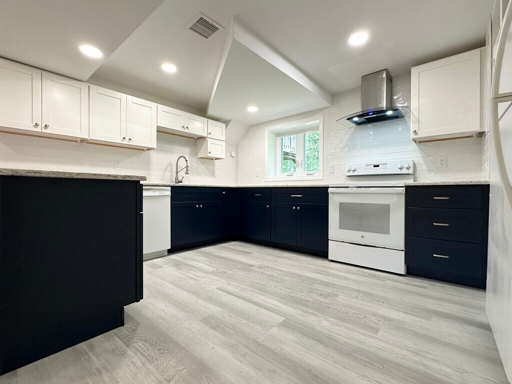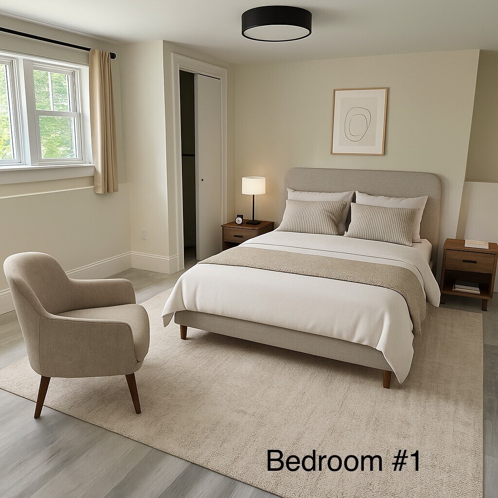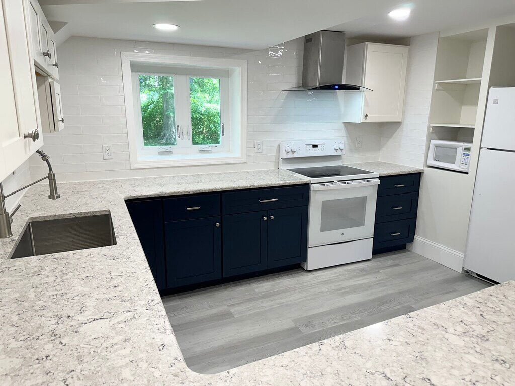 Sun-Filled, Spacious newly renovated apartment for Rent is on the first floor of a large two-family house. 6 rooms total with 1200 sqft of living space in Bedford MA with the following features: 3 bedroom, eat-in kitchen, full bathroom and living room. Additional in-unit storage is included for your convenience. New flooring, central forced hot-air high efficiency gas heating. All brand new double-pane energy-efficient windows throughout the unit. Renovated full bathroom with gorgeous Italian-style tile work, walking shower and in-shower light. Spacious updated open-concept kitchen with quartz countertop, dishwasher, refrigerator, microwave and electric range, and a beautiful view of the yard. Brand-new washer/ dryer in the unit. Large landscaped yard to make BBQ, relax and enjoy; designated area for gardening if desired. Driveway with 2 parking spots for this unit. Marshals and TJMax, restaurants and Coffee shops are all several miles away from the house. location; only about five-minute drive from Rt. 128, 495, Rt 2, Rt 3, Rt 4. A mile away from famous Minuteman bike path (that goes all the way to Harvard Sq, Cambridge), and Concord river (perfect for fishing, canoeing, boating).