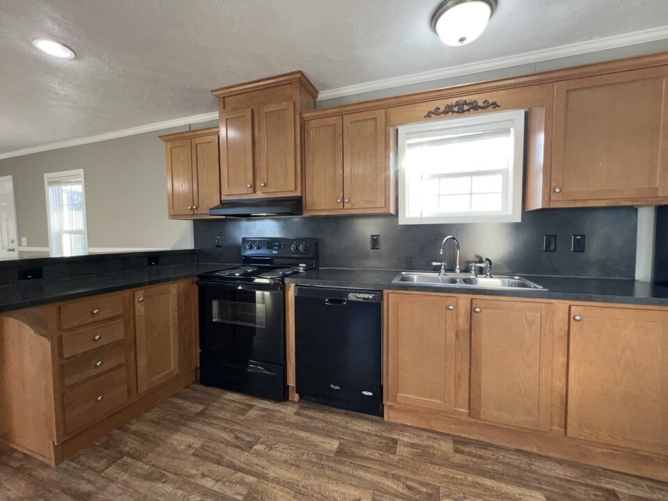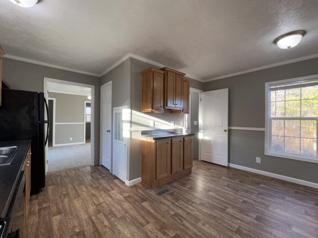 Nestled beside the quiet beauty of rural forest and rich farmland, this inviting 3 bed 2 bath manufactured home blends comfort, space, and natural charm. Step into an open living area designed for connection, where warm light filters in and the surrounding seasonal colors create a peaceful backdrop.The expansive kitchen is a true highlight, offering abundant cabinetry, a generous bar island, a separate built-in bar, and a dedicated pantry that keeps everything organized and within reach. A closed-off laundry room adds convenience and privacy to your daily routine.The primary bedroom is crafted for relaxation, easily accommodating a king-size bed and leading into a spa-inspired en-suite featuring a large garden tub and a separate stand-up shower. A very large dual-sided walk-in closet completes the suite, providing exceptional storage and comfort.Guests will love the front bedroom, framed by three stunning bay windows that capture the glow of the surrounding autumn landscape.