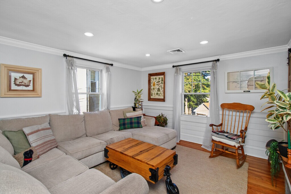 24 Gill Rd, Apt 4 is a beautifully renovated top-floor condo just outside Waverley Square, bordering Belmont and Watertown. Thoughtfully customized by a professional woodworker, this home offers high-end finishes and craftsmanship rarely found in rental apartments. The unit offers 820 square feet of living space, plus an additional 10' x 6' bonus room overlooking the backyard - creating flexible extra space ideal for a home office, sunroom, or creative studio. The top-floor location provides added privacy, quiet, and abundant natural light. The sun-filled living room features elegant wainscoting, custom trim, crown molding, recessed lighting, and an oversized storage closet, creating a refined yet comfortable living space. The updated kitchen is both stylish and functional, highlighted by custom chevron wood flooring, shiplap walls, bespoke light fixtures, generous countertop space, and a custom island centerpiece. A spacious bedroom features elegant, paneled walls, sliding barn doors, and two closets. The bedroom opens seamlessly into the bonus sunroom. The updated bathroom includes marble tile, a freshly reglazed tub/shower, and clean, classic finishes. Central air with a Nest Thermostat provides everyday comfort and convenience. Additional amenities include private laundry in the basement, one dedicated off-street parking space, a large private, locked storage area, and access to a spacious yard ideal for grilling and hosting. The location offers easy access to the MBTA Commuter Rail (Fitchburg Line), bus routes, shopping, and major routes, while also being close to Beaver Brook Reservation in Belmont, nearby parks, and walking trails. Perfect for those who enjoy time outdoors, morning walks, or weekend hikes. A rare opportunity to rent a custom-finished, top-floor condo that combines craftsmanship, generous space, and access to both urban convenience and nature. Additional highlights include: • Hardwood floors throughout • Recessed lighting and custom fixtures • Private Laundry in Basement • Bonus sunroom / office / flex space (+10’x6’) • Shared outdoor green space with seating • Well-kept, professionally managed property (snow removal and landscaping included) • Dedicated driveway parking spot • Extra large locked storage space Conveniently located near local shops, restaurants, and major routes, this home offers a quiet residential feel with easy access to everyday amenities. 12-month lease preferred. First month’s rent and security deposit due at signing. No smoking. No Pets.