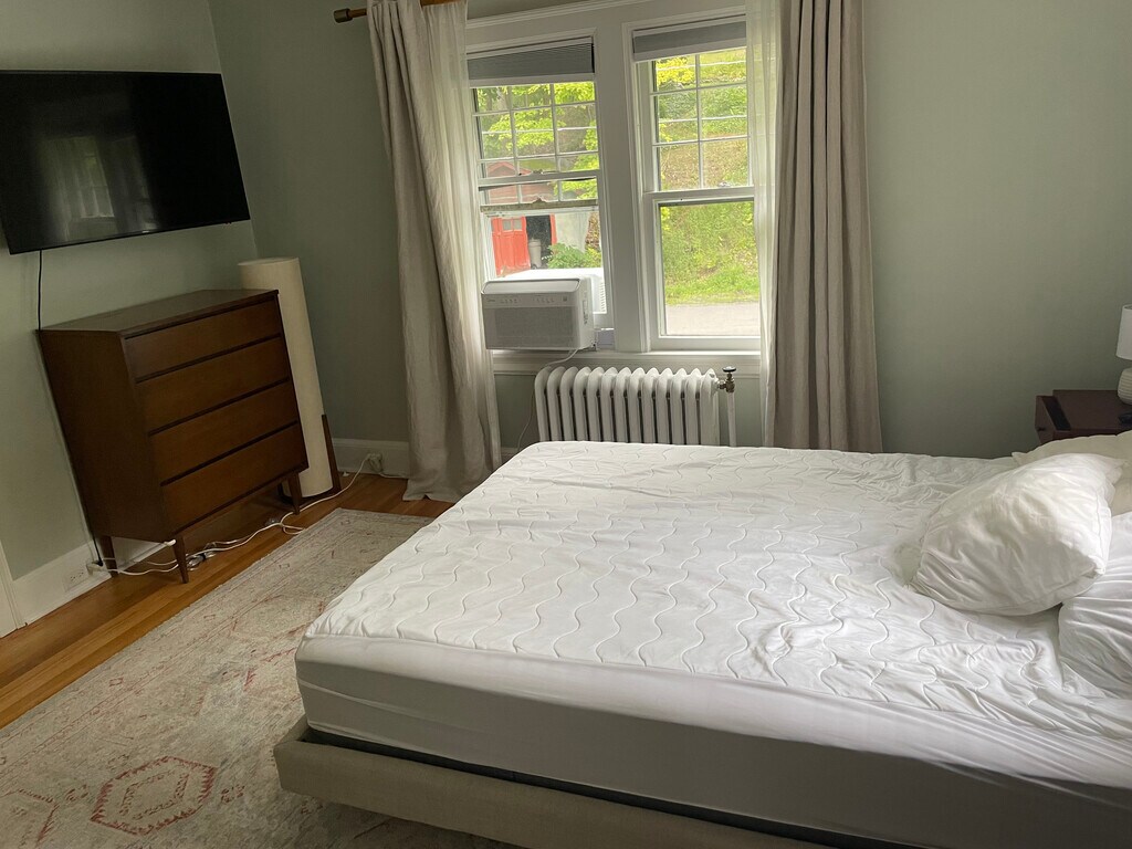 Come enjoy this beautiful life-filled Dutch Colonial with views of Cayuga Lake. This house affords you unmatched convenience and is walkable to Cornell, Cayuga Lake, downtown Ithaca, and Sunset Park, not to mention Boynton Middle School and Ithaca High School. A short bike ride gets you to the amazing farmers' market and it will take 5 minutes by car to groceries and other shopping. In warmer weather, take advantage of the remarkably affordable Cornell Community Sailing club, the nearby Waterfront Trail, and gorges a short walk away. In the winter, ski at Greek Peak a half hour away or a number of great cross-country skiing trails in town. Inside, enjoy the open floor plan, an all-season sunroom, and updated eat-in kitchen. The second floor has three bedrooms, a full bath, an office (that opens to the second-floor deck), and a window seat on the landing. Deep backyard features a fire pit, stream, and vegetable garden along with the spacious back deck. The home is furnished and currently one of the bedrooms is furnished as an office. Looking for an academic year lease, starting in mid-late August and running through at least the end of May 2026. I have some flexibility on start and end dates. Video tours are available. Please send me a message and I will respond with a link. Academic year rental with start date in mid-late August and end date no later than mid-June 2027.