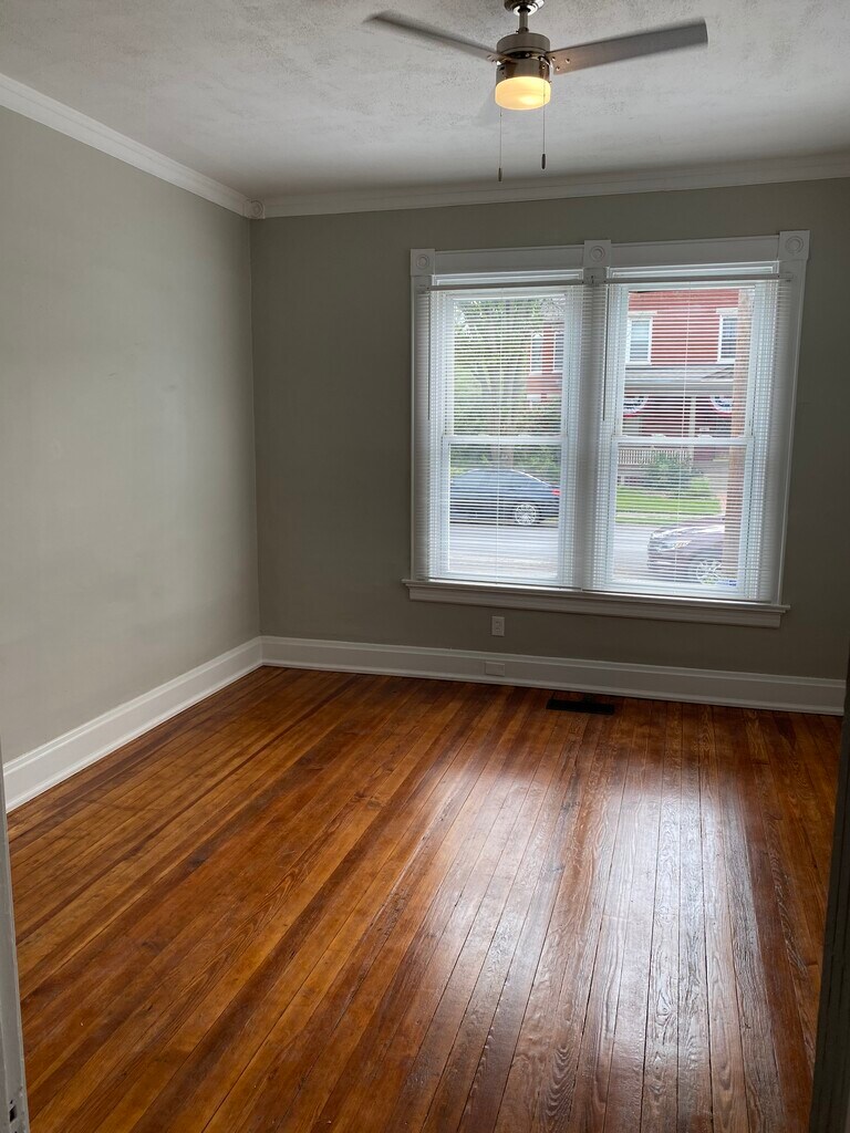 This property is a shotgun style duplex apartment with 10ft ceilings on a charming street in Wallace Woods. Completely renovated with brand new kitchen and bath with a skylight. Washer/ Dryer . Apartment can be used as 2 bedroom or bedroom and a office. Off street parking. We do NOT accept section 8. Renter pays for all utilities. Small dog or cat ok, pet deposit $100 with a $25 monthly pet fee.