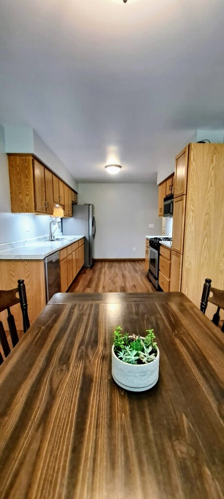 Tours will be offered to applicants who apply through apartments .com and meet the qualifications. Interested? Follow these steps: 1: Review the property description and application process on apartments .com 2: Apply through apartments .com. Qualifications described below. 3: Tours are offered after application is received and reviewed 4: Leases are offered based in order of qualifications Qualifications: 1: Minimum income of $50,040 is stable and verifiable 2: No evictions and no criminal background pertinent to renting 3: Credit score above 630 Description: Move in ready. Enjoy this spacious home in a quiet neighborhood. Enjoy the evenings at the patio in back yard. The attached garage is heated and has plenty of room for one car with storage on heavy duty shelves. Park three cars off the street. Central air provides comfortable heating and cooling. The stove, furnace, water heater and dryer are gas. The tenant cares for snow removal. Absolutely no smoking tobacco or cannabis inside the property and garage. Please provide a non-refundable pet deposits for your small furry friends, except service animals. Proof of renters insurance is required. Tenant Pays: Electric utility, gas utility, internet/cable TV Provided with rent: Water, sewer, trash removal, lawn mowing Appliances: Split Door Fridge, Dishwasher, Gas Stove, OTR Microwave, Washer & Dryer, Garage Furnace