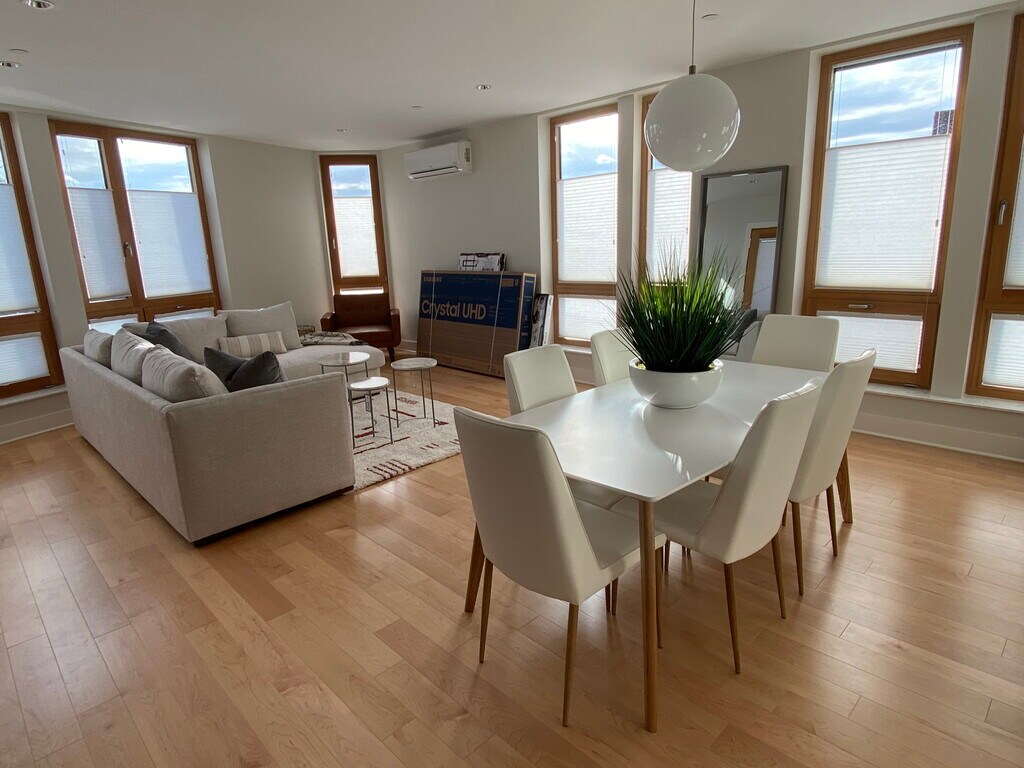 Just Listed! Chic 2-Bed, 2-Bath Penthouse Corner Unit. The Sync 240 in Medford is pleased to offer an exceptional 2-Bed, 2-Bath Penthouse corner unit for immediate occupancy. This spacious and elegant unit features Noise-Reducing floor-to-ceiling windows, an Open Concept European-Style Kitchen with sleek Bosch SS Appliances, Quartz Countertops, 9' ceilings, Gleaming Hardwood Flooring, In-Unit Laundry, a Spacious Primary Suite with an On-Suite Luxury Bath, Walk-in Closet, Linen Closet, and additional amenities. Outside the unit, residents enjoy two deeded parking spots (Nos. 11 and 28), a bike storage room, a spacious 6 X 10 Personal Storage Room, a resident lounge, Amazon package lockers, a basement gym (currently undergoing renovations), a Butterfly MX Video entry system, Roof Solar Panels, and an indoor air filtration system throughout the entire building. All applicants 18+ must complete a rental application and possess EXCELLENT Credit, Income & References. Rent, deposits, and fees are due at lease signing: * First Month Rent: $3,200 * Last Month Rent: $3,200 * Security Deposit: $3,200 * Move-In Fee: $150 * Application Fee: $35 (may apply)