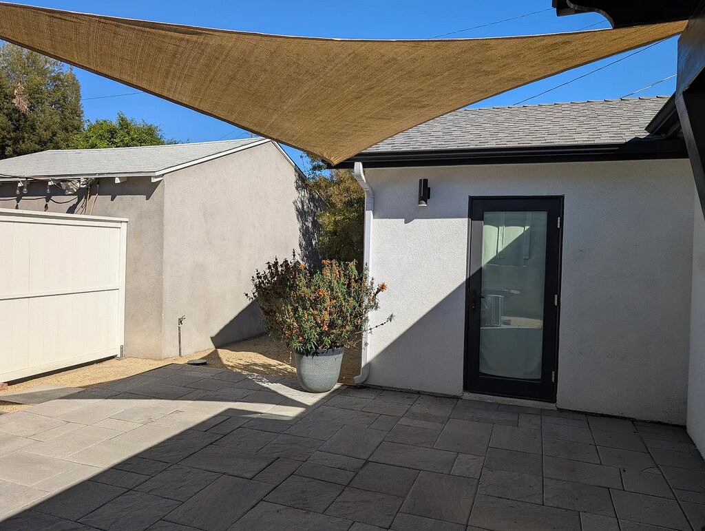 This newly renovated ADU features brand-new luxury vinyl plank flooring for a fresh, low-maintenance vibe throughout. The kitchen dazzles with sleek quartz countertops and stainless steel appliances, complemented by an open layout that floods the space with natural light. Enjoy hassle-free living with an in-unit washer and dryer, plus a serene fenced backyard for relaxation. Tucked in a quiet Burbank cul-de-sac, it's steps from top schools, Warner Bros. Studios, and lively shopping ideal for professionals. The bathroom, with modern fixtures and fresh tiling, delivers effortless comfort from day one.