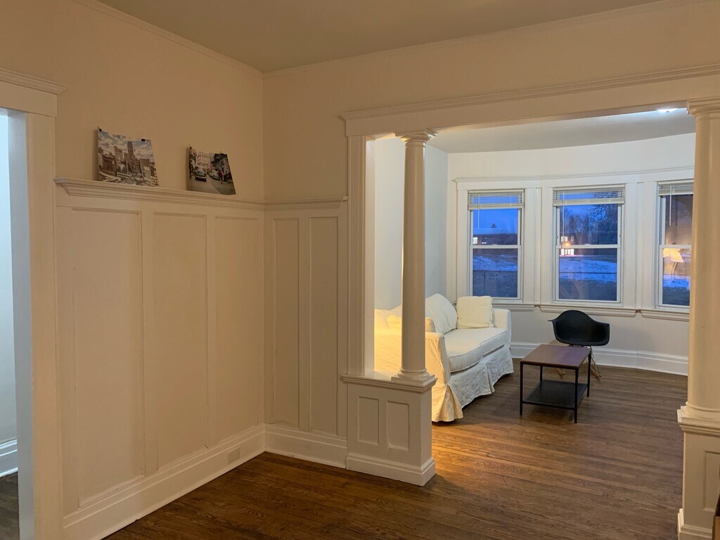 Two bedroom with original wood floors and trims Small pets are ok Washer and dryer are in-unit in basement, not shared.