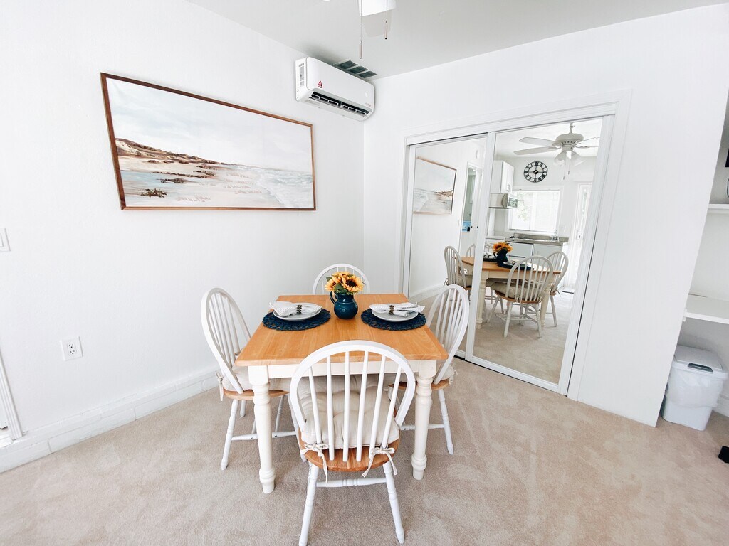 This charming studio features a kitchenette with a microwave, refrigerator, stove, and dining table. It includes a TV with cable service, a queen bed, and a washer and dryer. Enjoy a peaceful outdoor seating area, a private entry, and an assigned parking space. (All utilities are included in the rent: Water, Sewer, Trash, Electricity & Gas, Air Conditioning, Heater, Internet). Located in Point Loma, a historic neighborhood just 0.9 miles from Liberty Station, this area is rich in history. It offers vibrant public markets, restaurants, walking paths, a theater, and easy access to the harbor. It's also only a couple of miles from the heart of Old Town, known for its rich Mexican heritage. The trolley provides convenient access to various destinations, including the border, downtown, the ballpark, Fashion Valley, SDSU, and more.