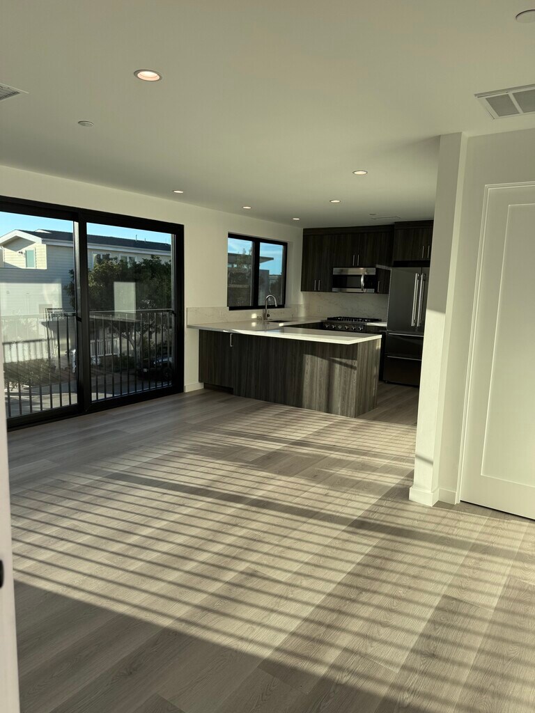 Apartment Description You could be the first resident of this spacious, open concept, ocean view, 2 blocks to the Manhattan Strand one bedroom that was remodeled to the studs in 2025. Every aspect of this luxurious apartment is new including: Large 15’x 11’ ocean view living area 14’ 3 panel sliding door Large 15’x’11’ bedroom Built in closet by California Closets Full commercial kitchen with ocean view Stainless Steel gas range Over Range Stainless Steel microwave Large Stainless Steel refrigerator with ice maker Stainless Steel dishwasher Quartz countertops Large 7’10” peninsula New, soft close cabinetry with ample storage In unit washer and dryer Large fully appointed Bathroom Fully tiled frameless glass shower Lighted bathroom mirror New quartz countertop All new cabinets with soft close hinges and ample storage Recessed, dimmable lighting throughout Fully air conditioned Double paned windows New LVP flooring throughout Floor to ceiling drapes One designated parking spot