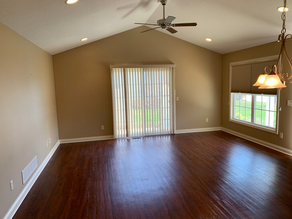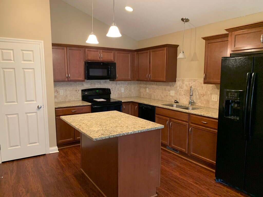 This property at 2409 Wittenberg Ave SE features 3 bedrooms and 2 bathrooms within a total of 1,348 square feet. The open floor plan has a kitchen features an island and granite countertops throughout, offering ample space for cooking and dining. The living room with vaulted ceilings provides a comfortable area for relaxation and has a private patio steps away. The master suite has a full bath with 2 sinks, walk in shower and a large walk in closet. The other 2 bedrooms are nice sized with larger closets. Additional amenities include first floor laundry hook up and a large, clean basement for extra storage or recreational use. The exterior is well-maintained, providing a welcoming entrance. Tenants required to have good credit and income at least 3 times rent.