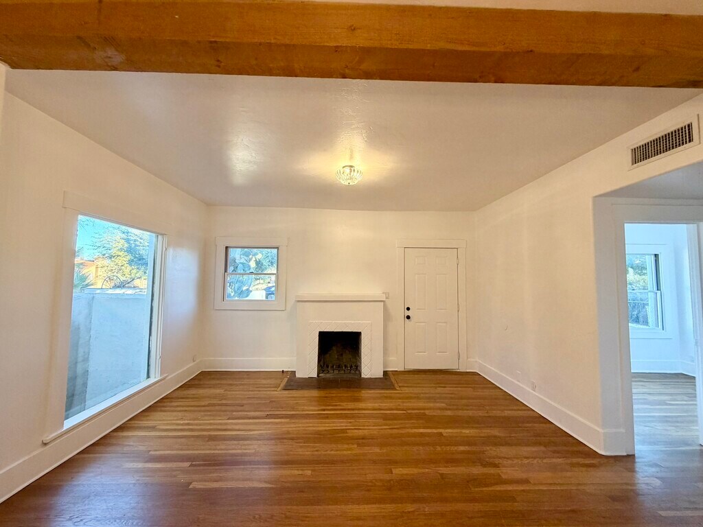 Charming stucco 3-bedroom, 2.5-bath home conveniently located in central Tucson in the well-sought-after Sam Hughes neighborhood. The house has beautiful beamed ceilings, a fireplace, hardwood floors, quartz countertops with large-format tiled floors in the family room, a large fenced backyard with an artificial turf area for outdoor enjoyment, and easy care. A minimum 12-month lease is required. No smoking allowed. Pets are okay with approval. Close to Downtown Tucson, the University of Arizona, and Banner University Medical Center. Surrounded by a lot of dining and shopping options. Available Now.