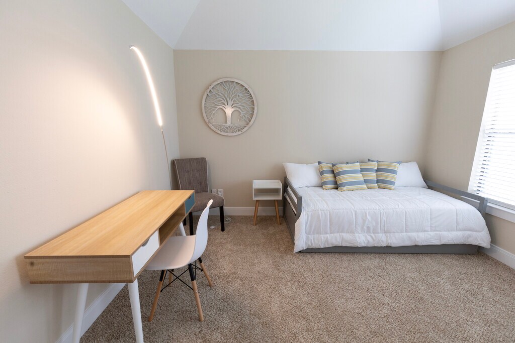 Perfect for medical professionals, clinical or any other extended stay or annual lease. Fully furnished 3 story (3 Bedrooms/3.5 bath) townhome in a gated community with plenty of space to stay and work while being centrally located to the Texas Medical Center, Hermann Park, Rice University and Museum District. Attached parking garage for two cars. Level-in access bedroom suite with a queen size bed on the first floor with full bathroom. On the 3rd floor, there is a Master bedroom with a king size bed (or 2 twins) and spacious bathroom. Sunny office (2nd bedroom) with a daybed ( trundle twins) with shower bathroom. Each bedroom has a desk perfect for work-from-home arrangements and private bathroom. Huge living room, open dinning and bar area on the 2nd floor. Rent does not include electricity and internet