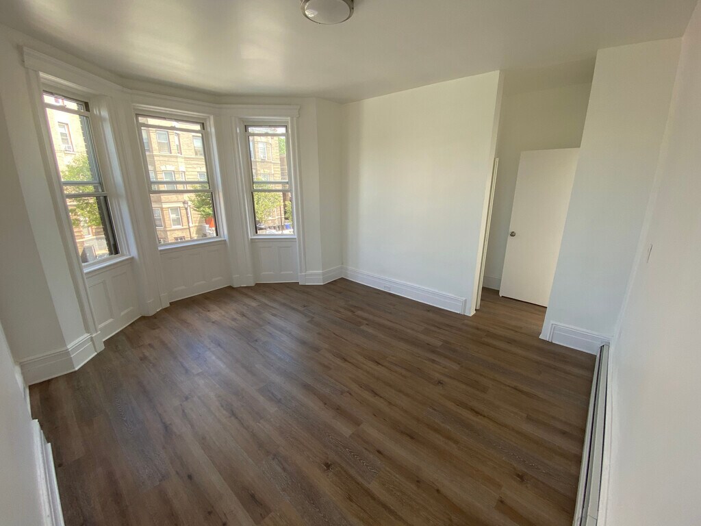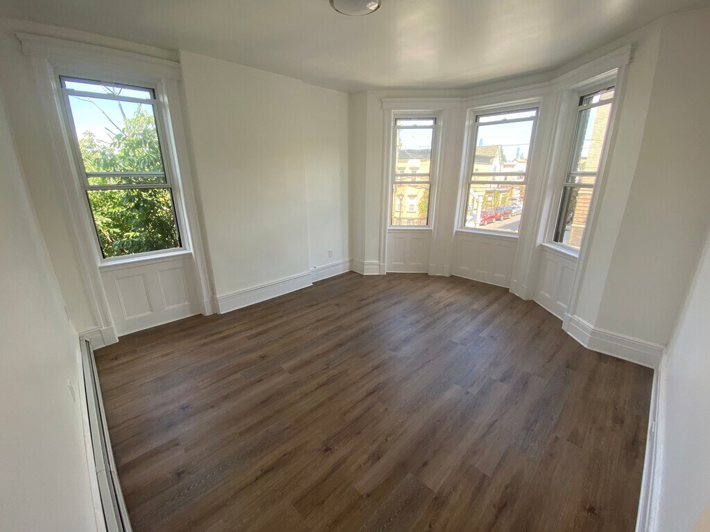 This sun lit newly renovated apartment features Carrera Quartz countertops, handcrafted wood details, and stainless-steel appliances. It also includes a full-size washer/dryer within the unit. Skylights in the renovated contemporary bathroom and above the staircase allows these normally dark areas to feel bright and airy. The modern finishes are coupled with the home’s original large prewar moldings to create a fresh, yet elegant look. The apartment has 3 roomy bedrooms, including a spacious master which features a walk-in closet and its own bay windows, perfect for a dreamy nook. Convenient location down the street from the bus which is only 2 stops/10-minute ride into Manhattan (Port Authority). Also located one block from Bergenline Avenue, lined with mom and pop stores and restaurants. Situated next to a park with playground, and a walking/jogging track with city views nearby. 5-minute drive into Hoboken for more shopping, restaurants and access to ferries into Manhattan.