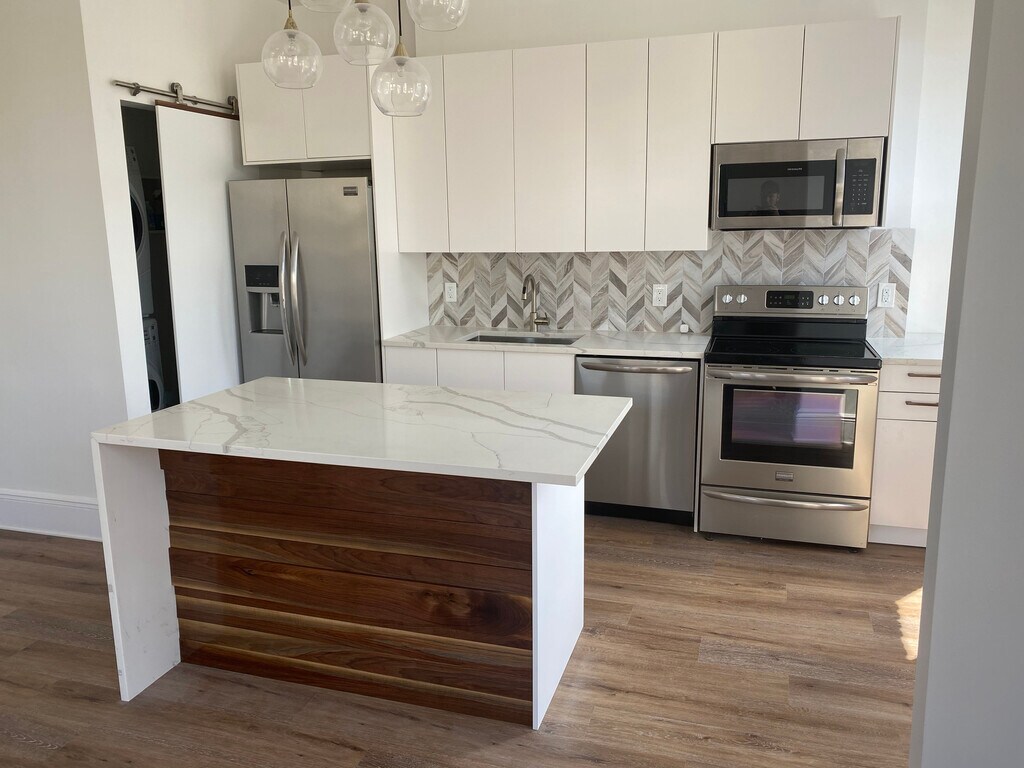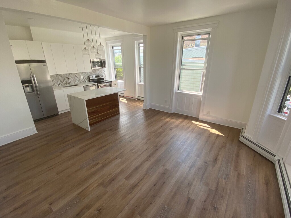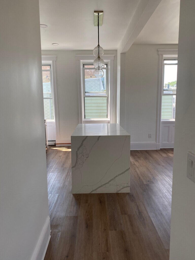 This sun lit recently renovated apartment features Carrera Quartz countertops, handcrafted wood details, and stainless-steel appliances. It also includes a full-size washer/dryer within the unit. Skylights in the renovated contemporary bathroom and above the staircase allows these normally dark areas to feel bright and airy. The modern finishes are coupled with the home's original large prewar moldings to create a fresh, yet elegant look. The apartment has 3 roomy bedrooms, including a spacious master which features a walk-in closet and its own bay windows, perfect for a dreamy nook. Convenient location down the street from the bus which is only 2 stops/10-minute ride into Manhattan (Port Authority). Also located one block from Bergenline Avenue, lined with mom and pop stores and restaurants. Situated next to a park with playground, and a walking/jogging track with city views nearby. 5-minute drive into Hoboken for more shopping, restaurants and access to ferries into Manhattan. - Pet friendly; no breed/weight restrictions (pending meet and greet approval) - No brokers fee - Water included - Application fee and background check required