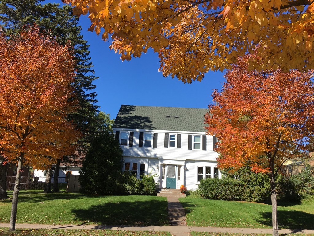 SIDE-BY-SIDE DUPLEX - includes heat/water/sewer/garbage - 2417 E 3rd St, Unit 2E - 2 bedroom and an office or 3rd BR- rent listed for up to 3 residents ($200 for each additional resident)- includes 2 car garage space, residents pay Electricity, internet, phone/cable and gas for fireplace and water heater. Hardwood floors - Kitchen, dining room 8 1/2 x 10, living room 14 x 19, on main floor, laundry room on lower level. 1 Bathroom on lower level with shower and one on second level with tub/shower. Both bathrooms have ceramic tile floors. 2 bedrooms on second floor, front bedroom is 11 x 16, and back bedroom is 13' x 10'. 3rd bedroom or office (10'6" x 12') on 3rd floor. Family room with free standing gas fireplace and office (10 x 9). There is also plenty of storage. Shared deck in back, off street and on street parking, close to bus stop. Lilac trees line yard. Smoke free, party free unit. No smoking within 25' of buildings. $35 processing fee per applicant. Our residents have excellent credit, excellent background check, excellent prior rental history and verification of income of at least 2 1/2 to 3 times monthly rent. Student residents provide a parent/guardian guarantee of rent. Pets welcome with non-refundable pet fee and monthly pet rent. Please note elder dogs do not need to be fixed or kenneled if they are not used to being kenneled.