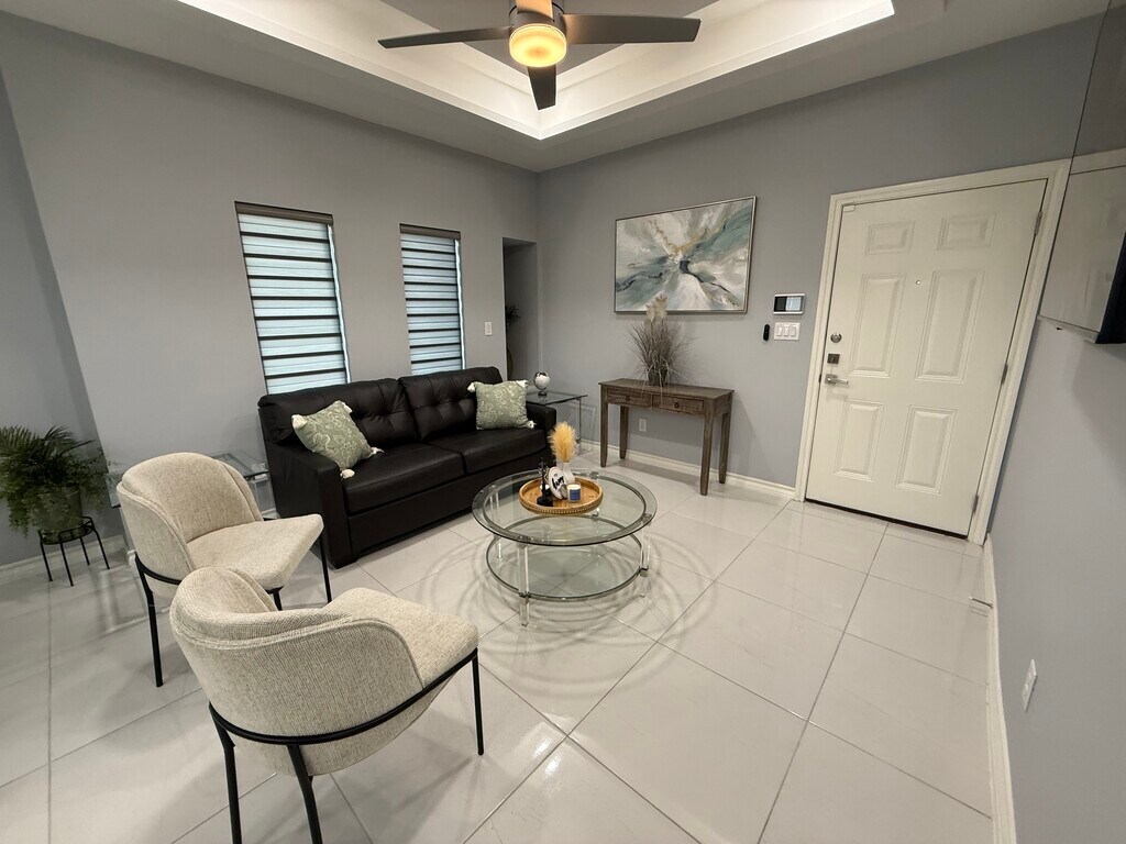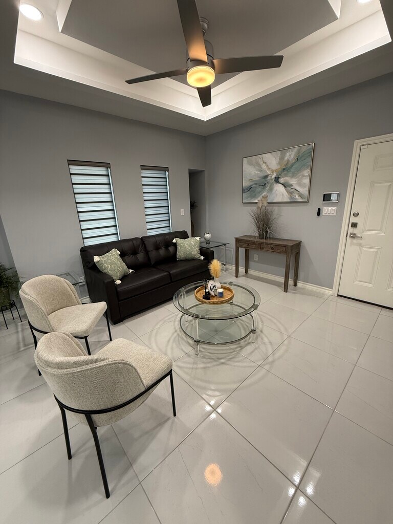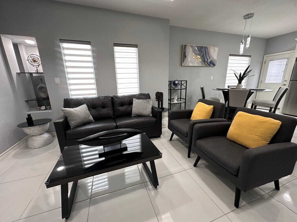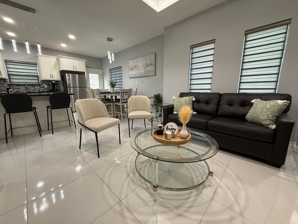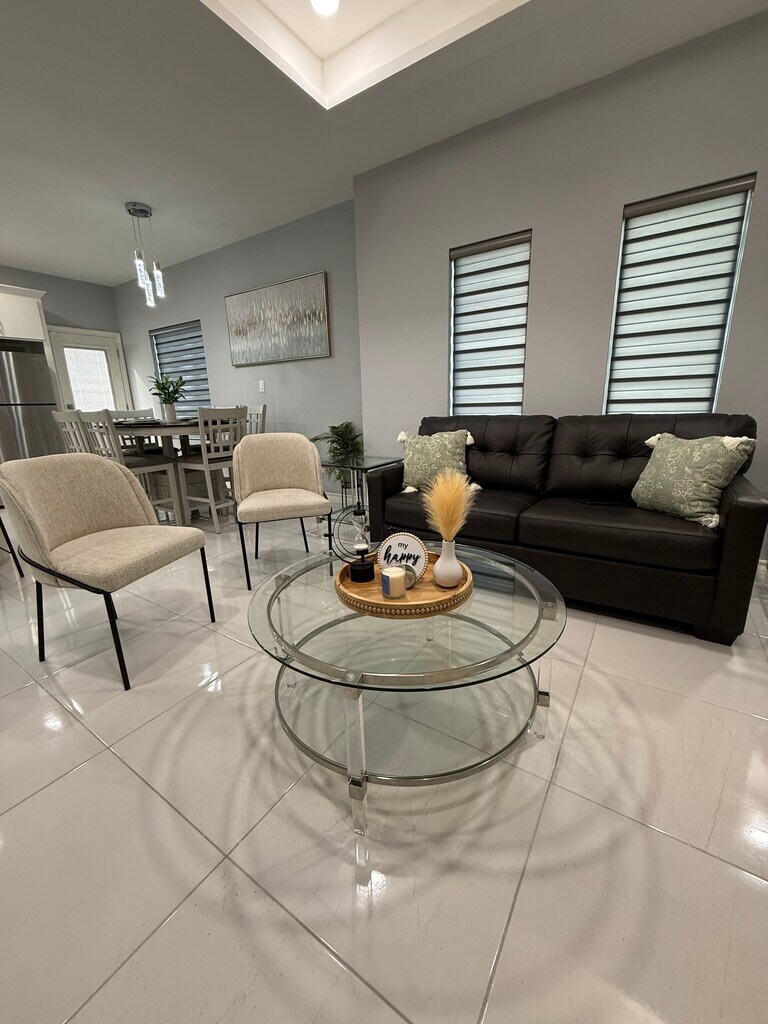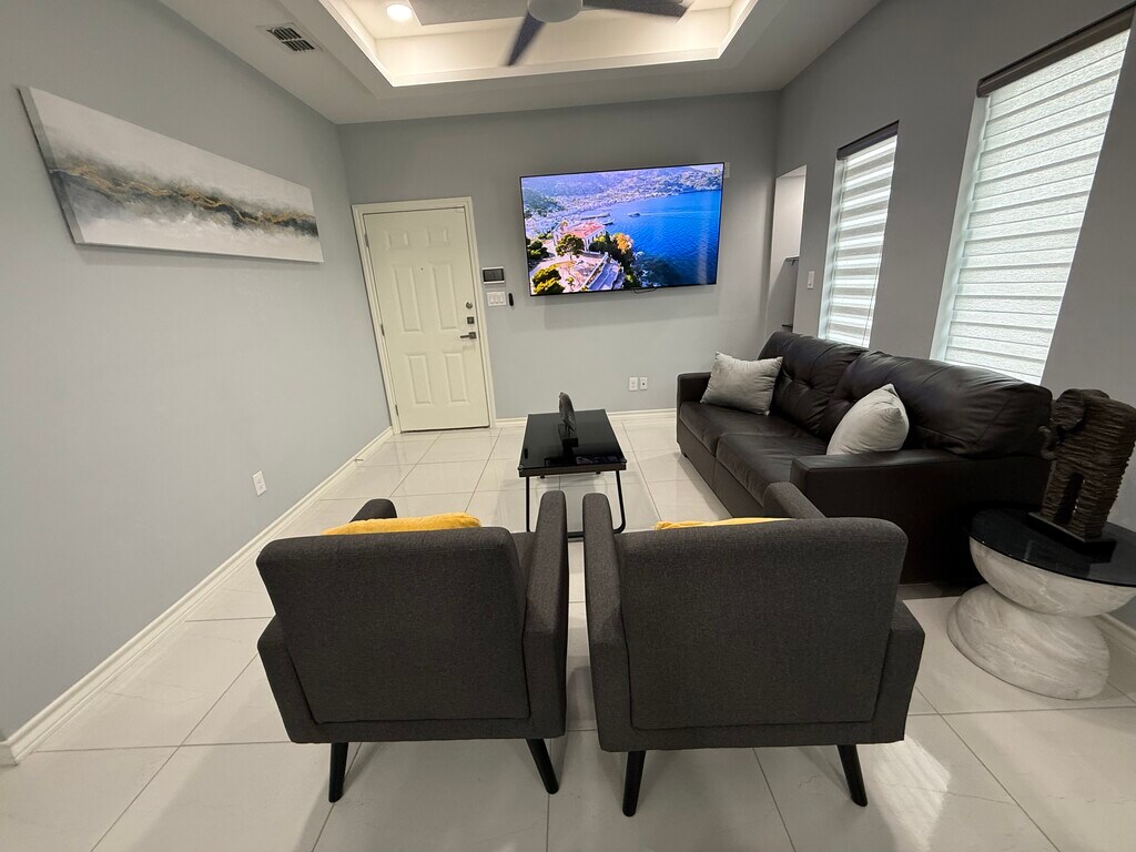 Luxury Furnished Apartment | All-Inclusive Corporate Housing | Ideal for Travel Nurses & Professionals Elevate your stay in this luxury fully furnished apartment designed for professionals who value comfort, style, and convenience. Offering upscale finishes, all-inclusive pricing, and flexible monthly terms, this premium residence is ideal for travel nurses, corporate relocations, executive stays, and extended assignments. This modern, designer-curated home features an open-concept layout filled with natural light and sophisticated touches throughout. The chef-inspired kitchen showcases granite countertops, stainless steel appliances, custom cabinetry, and a sleek backsplash — perfect for both everyday living and entertaining. The spacious living area is thoughtfully styled with contemporary furnishings and large mounted smart TVs, creating a true luxury living experience. Each bedroom is designed as a private retreat, complete with high-end furnishings, large-screen smart TVs, premium mattresses, and ample storage. Dedicated workspace areas and ultra-fast 1 Gig fiber internet make remote work effortless and reliable. All-Inclusive Luxury Living Enjoy a seamless, hotel-style experience with a single predictable monthly rate: • Electricity and water included (generous usage cap) • 1GB high-speed fiber internet included • Sewer and trash service included • Fully stocked kitchen with modern appliances Designed for Professionals Perfectly suited for: ? Travel nurses and healthcare professionals ? Corporate housing and executive relocations ? Traveling professionals and consultants ? Insurance housing placements ? Extended business stays Safety, Privacy & Peace of Mind • 24/7 exterior security cameras • Smart alarm system with emergency dispatch capability • Quiet, safe, and well-maintained community Premium Features • Fully furnished, designer interiors • Spa-inspired bathrooms with modern finishes • In-unit washer and dryer • Contemporary lighting and upscale décor • High-speed WiFi throughout the home • Off-street parking available Experience the perfect blend of luxury, flexibility, and convenience in a turnkey residence designed for modern professionals. Whether you're on assignment, relocating, or seeking executive housing, this upscale apartment delivers a refined, stress-free living experience. Now accepting monthly bookings. Contact today for availability and corporate or travel nurse rates.