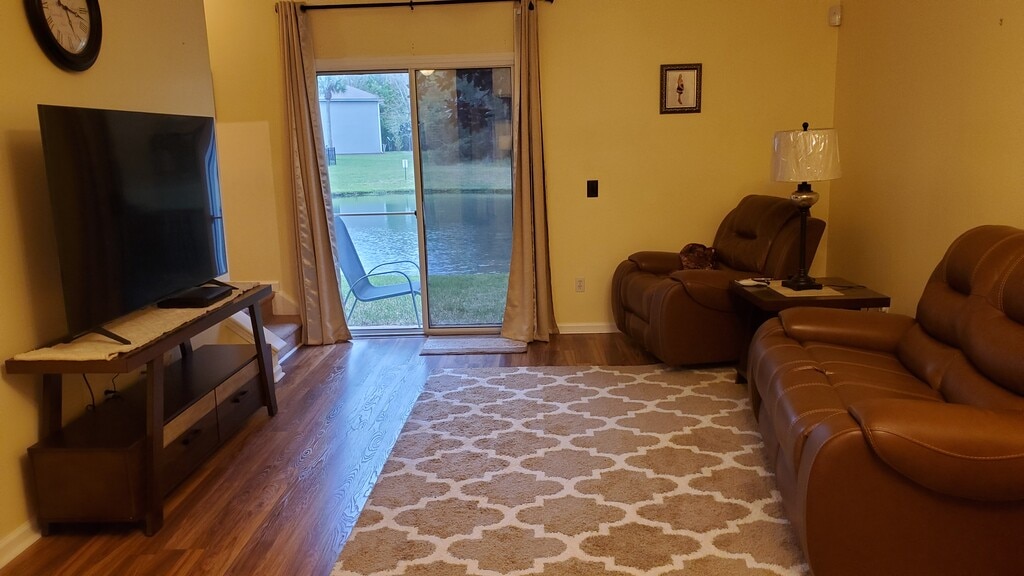 Absolutely charming and spacious lake view town home for rent. Minutes from I-95, CR210, Durbin pavilion shopping mall and highly rated St Johns county schools. One car attached garage located in a quiet gated community with a playground and pool. 2bedroom/3bath, attached bath in both the bedroom and walk-in closet. Bedrooms are upstairs, with a large living/dining room and a half bathroom at lower level and lots of storage. Stunning laminate floors in the living room, tile floors in the kitchen. Carpet in the bedrooms. Stainless steel appliances. No pets. Available Niw.