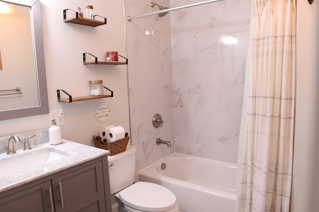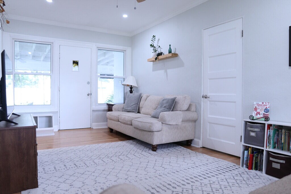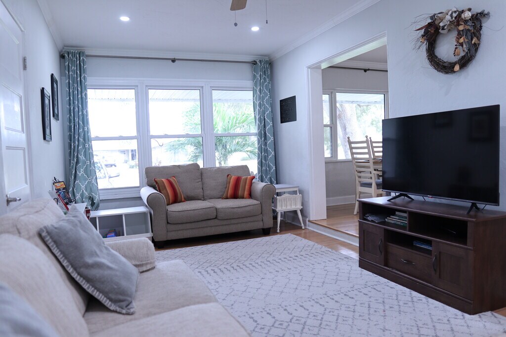 Discover St. Pete from Shady Side, your quiet oasis! Perfectly positioned, this home gives you easy access to sun-kissed beaches and city buzz. The home offers a screened patio with a large fenced backyard & grill, cozy living room with a smart TV, and bedrooms fitted with cozy mattresses. Whip up family meals in the fully-equipped kitchen, and enjoy outdoor fun with beach toys, games, and more. Child-friendly amenities and lush landscaping complete your ideal vacation stay. Shady Side is the perfect place to stay with your family and is ideally located near some of the best beaches in the area, including Gulfport, Pass-A-Grille Beach, St. Pete Beach, and Treasure Island. In addition, you're just a short drive from Central Avenue and Downtown St. Pete, which is home to a variety of coffee shops, family-friendly breweries, restaurants, and shops. Youll also be a 5-minute walk to the neighborhood playground and a 5-minute drive to Dell Holmes Park, which features a massive playground and splash pad. Detailed Home Features: Screen-In Patio | Washer and Dryer | Fenced backyard KITCHEN: Fully equipped with a dishwasher, drip coffee maker, blender, pots & pans, tea kettle, knife set, toaster, and more. LIVING ROOM: The open concept space offers a Smart TV and wireless internet. PATIO: Enjoy the expansive screened in patio including grill, extra refrigerator, and table for alfresco dining. MASTER BEDROOM: Relax in the king bed featuring a dresser, walk-in closet, and a full bathroom. BEDROOM 2: A cozy king mattress with a closet, and a full bathroom nearby. BEDROOM 3: 2 sets of bunk beds, glider and closet OFFICE: 2 desks, one of which is a stand-sit desk DINING ROOM: An open concept space with seating for six, ideal for breakfast or evening reading. DRIVEWAY: Ample parking for up to 4 cars BACKYARD: A large, fenced-in grassy yard with a sandbox and jungle gym set for outdoor fun. Please note this is not a party home. If you get caught having a party, you will be asked to leave. Dogs are accepted on a case-by-case basis. Must be well-behaved and clean. Fee of $150 per dog. Max 2 dogs allowed. This spacious home features everything you need for a relaxing and fun-filled vacation, including: - A beautiful screened-in patio with a grill, and plenty of seating - A cozy living room with a smart TV and a perfect spot for movie nights - A fully loaded kitchen with everything you need to cook your favorite meals -Toys and other baby/child equipment - Lush landscaping with fruit trees and beautiful bird songs - sandbox, beach toys, board games, jungle gym, swing