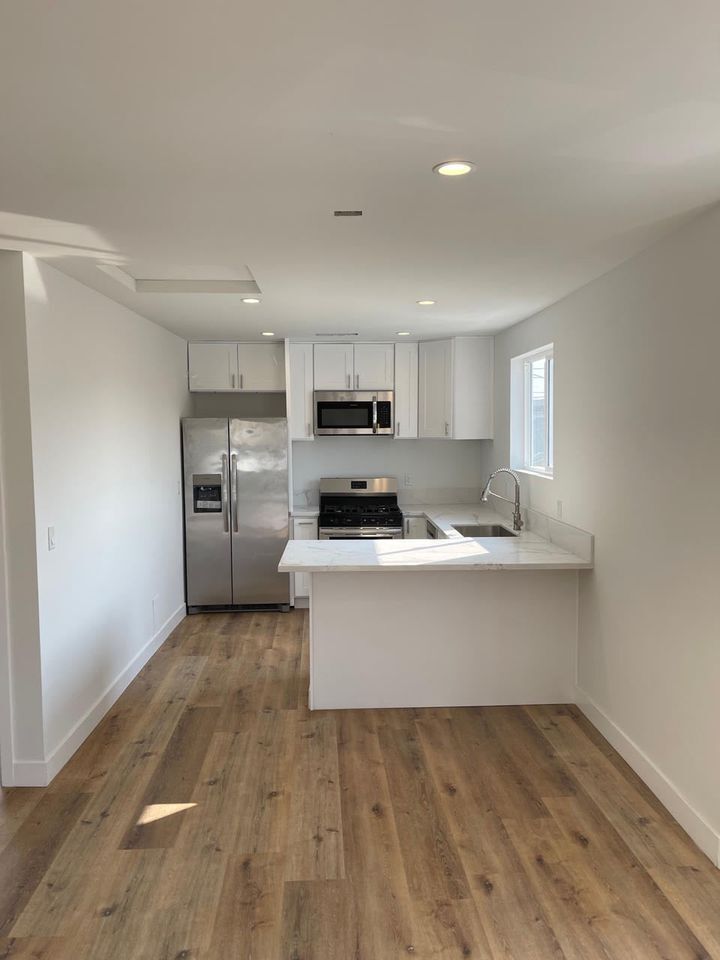 This 2 Bedroom 2 Bath A gorgeous modern unit has been completely remodeled (Brand New), bright natural light, open concept. Features include an open living, dining, and kitchen area, quarts counter tops, plenty of cabinet space, central A/C, new appliances including washer and dryer. spacious bedrooms, recessed lights, modern floating vanities, and much more. All Utilities are included. Pet Friendly. 4 total units for rent. Gated and secure property. Remote access. 2 Parking space (Open) $45.00 application fee everyone 18+ Square feet is approximate