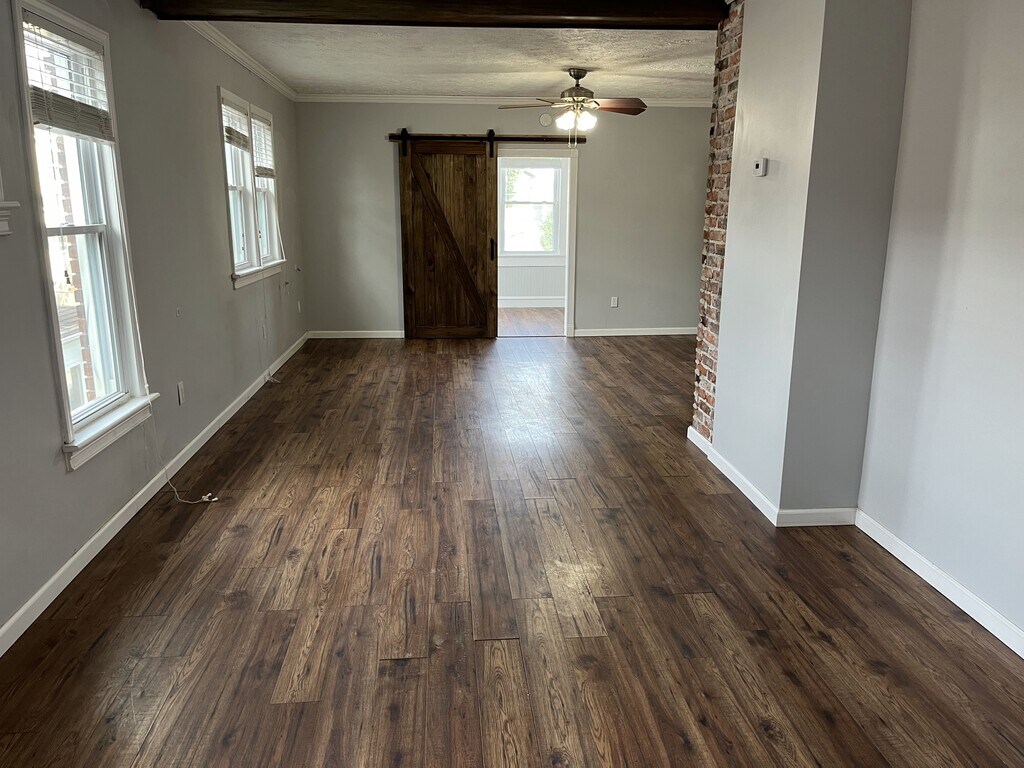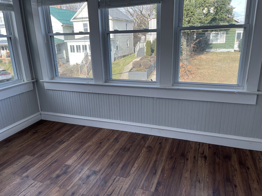 Beautifully updated 2-bedroom apartment on the 2nd floor. Huge shared back deck and fenced in yard. Sunroom and small open porch. Tenant pays all utilities. No pets. Includes fridge and stove. Tenant pays all utilities.