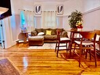 This beautiful apartment has 3 spacious bedrooms and 1 full bath with a tub. The kitchen is fully equipped with Stainless appliances, utensils and small appliances. All three bedrooms come fully furnished with a 55 inch TV. Washer and dryer in the hallway. This unit is on the first floor great for those with difficulty climbing stairs. Flexible leasing options available.