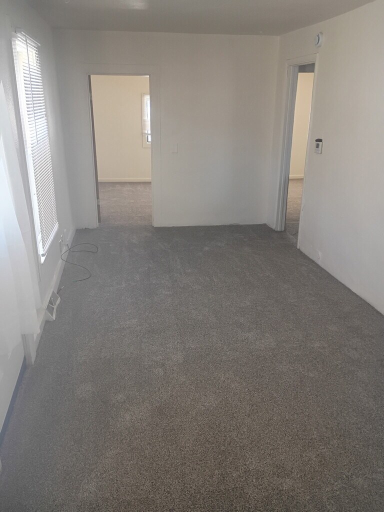 Fresh paint and new carpet rear part of a duplex, affordable 3 bedroom with very large back yard walking distance to the downtown and campus.