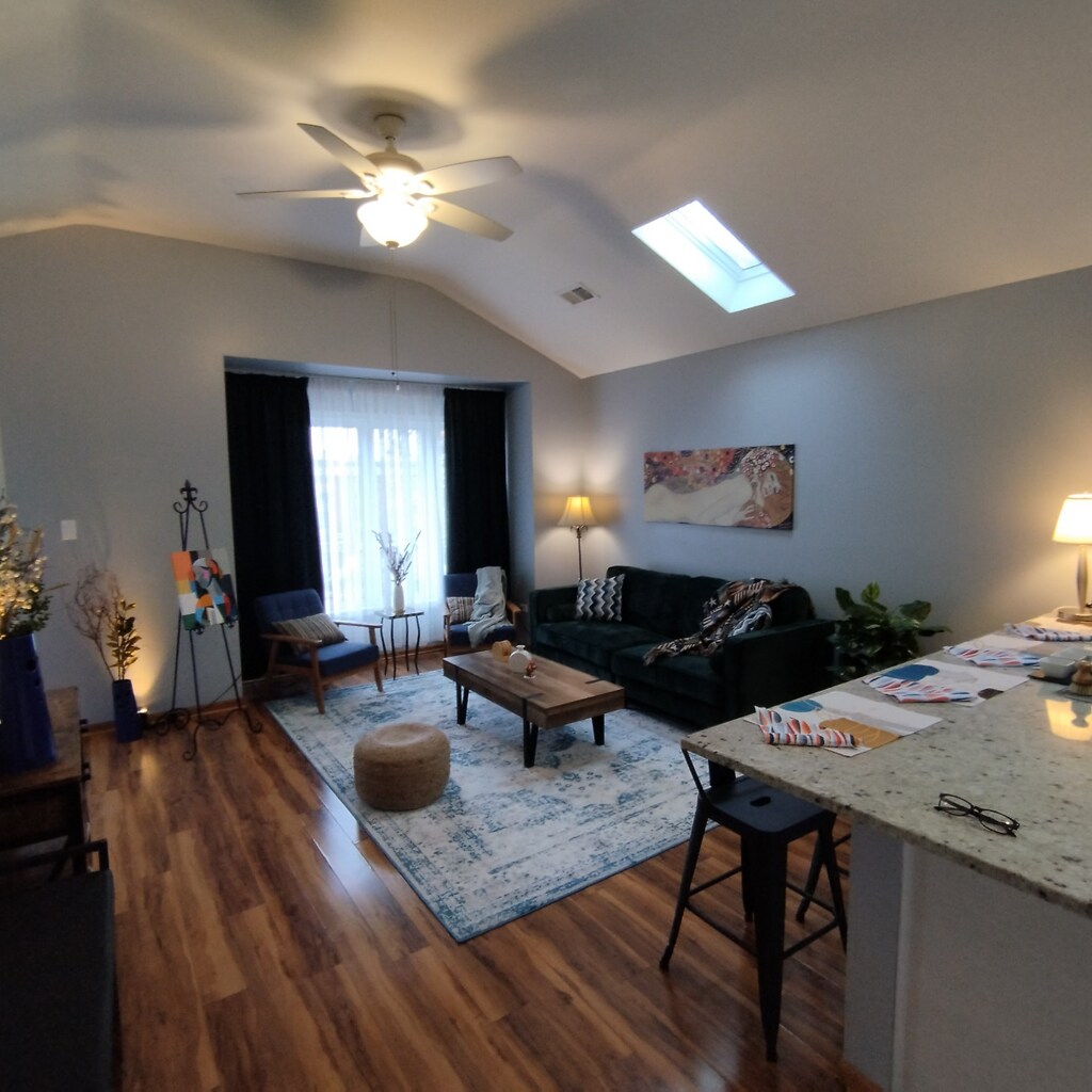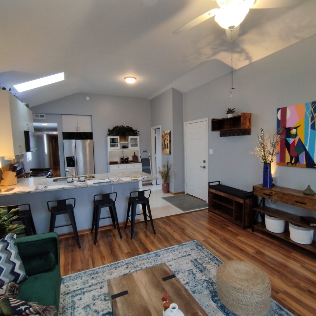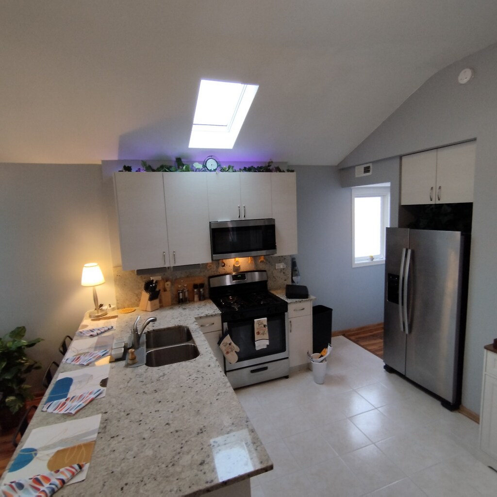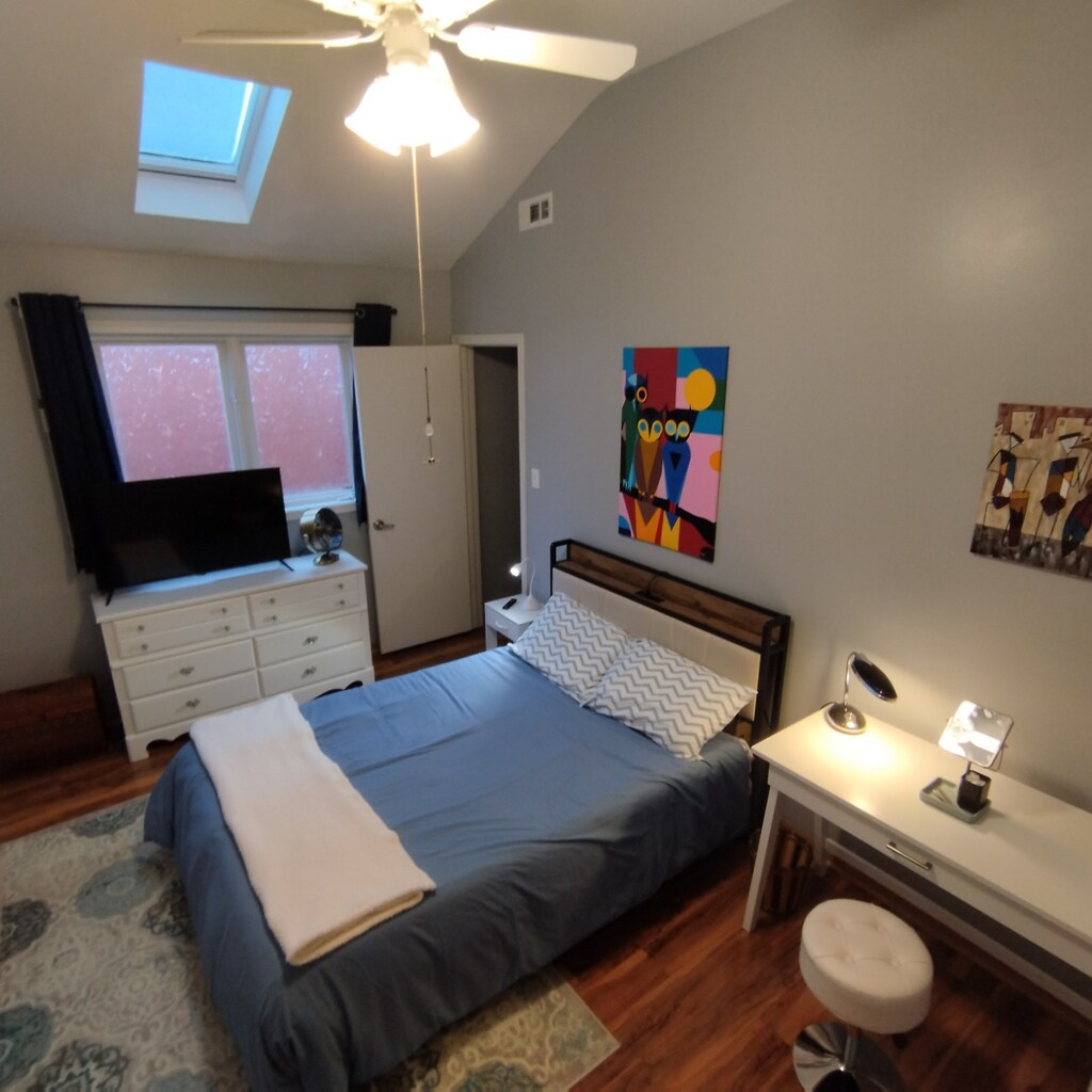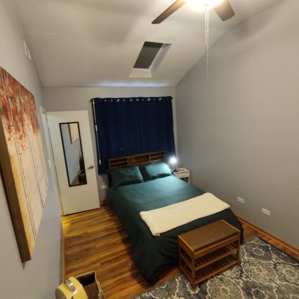 1 Year Lease - $3,800 per month. 2 Year Lease - $3200 per month Located on a quiet street, this stunning, fully furnished, three bedroom, smart, penthouse, apartment in the Tri-Taylor neighborhood of Chicago, is now available. Fully equipped kitchen Onsite Management. All utilities paid. Tastefully decorated in Mid Century Modern style. Newly renovated, newly painted, all new decorator electrical outlets and rocker switches. Blink Outdoor Wire-free smart security three camera system, two-way audio, HD live view, enhanced motion detection, works with Alexa, in the exterior, front and rear of the property. Ring Video Doorbell - HD video, improved motion detection. Eufy Security Touchscreen Smart Entry Door Lock. 1gb, high speed internet. Alexa Echo Dot. Alexa Echo Show 5 with Smart display. Nest learning thermostat. Shark AI Ultra Robot Vacuum with Ultra Clean, Home Mapping, 30-Day Capacity, Bagless Self Empty Base, Perfect for Pet Hair, works with Alexa. Elite Gourmet 1.7 Liter BPA-Free Cordless Electric Glass/Stainless Steel Kettle with Handy Auto Shut-Off Function Quickly Boil Water For Tea & More. Filtered water and ice dispensing refrigerator. Automated Bathroom Air Moisture Detection, Humidity Sensor/Fan Control Switch. Fresh water sprayer bidet. Excellent water pressure. Canon Pixma Wireless All-in-One Color Inkjet Printer with Mobile and Tablet Printing, works with Alexa. Full Size 8" Quilted Hybrid Comfort Foam and Pocket Spring Mattress. Full Size 8" Gel Memory Foam Mattress. LANE LINEN 100% Organic Cotton Pure White Full Size Sheets. Quilted Down Alternative Comforters. INSIGNIA 42-inch Smart Full HD Fire TVs in each bedroom with Alexa Voice Remote. Skylights in each bedroom with Skylight Blackout Blinds. Blackout shades on bedroom windows. Two Portable White Noise Sleep Sound Machines with Night Light, 24 Soothing Sounds, Adjustable Volume, Timer and Memory Function. 18 Drawer Tall Storage Dressers in each bedroom closet Espresso Maker. Drip coffee maker. French Press. Crock Pot. Food processor. Blender. Toaster. Electric can opener. PARIS RHNE 16-Piece Stainless Steel Kitchen Knife Set with Block, Built-in Sharpener. Pots, pans, dishes, cups, glasses, silverware and utensils. Iron, ironing board. Indoor spotlight accent lighting. Alexa-Enabled Multicolor Smart Light Bulb. Green Tufted Velvet Couch Mid Century Modern Sofa, with 2 Bolster Pillows in the Living Room. Frosted privacy window film. Ceiling fans. Off Street reserved parking, camera monitored. Plentiful street parking. Smoking allowed on the outside balcony. 4 blocks to the Illinois Medical District. 3 blocks to S. Western Ave. (Tri-Taylor) Blue Line Station. 1 block to S. Western Ave. 1 block to MUSE Coffee Shop. 6 blocks to Pete's Market. 30 minute walk to United Center Arena. Smart TVs in all 3 Bedrooms.