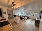 Welcome to your private retreat- located in a quiet gated address in an upscale neighborhood, offering an exceptional rental experience for travelers seeking a peaceful and quiet retreat. This charming apartment has just been renovated and sits on the same 6 acre lot as the main house. This oversized, fully furnished studio apartment blends comfort, modern style, and convenience in one beautifully updated package. Travelers have access to private parking and a private entrance. Step inside to discover: * A spacious open layout with thoughtfully curated furnishings and decor. * Oversized windows, featuring black out blinds, that fill the space with natural light and offer a peek-a-boo ocean view. * A comfortable queen sized bed with luxury bedding, a night stand, and a sound machine to ensure a restful night's sleep. * A massive 75 Frame TV which showcases beautiful art when not in use. The cozy living area has a spacious and comfortable leather couch. * The HVAC system includes a remote thermostat, allowing you to easily control the powerful air conditioning and heating combo ensuring you will stay comfortable in any weather. * A full-sized kitchen complete with all-new stainless steel appliances, a full-sized refrigerator, soft-close cabinets, and everything you need to cook. * A large bathroom with a modern vanity, washer & dryer and plenty of storage options. * For those who need to work while staying in the studio, there is a large adjustable height desk that gets plenty of natural light. The desk provides a dedicated space for you to set up your laptop and work comfortably. This home away from home provides all the comfort of everyday essentials, while still providing peace and quiet and scenic views. Additionally, this rental is conveniently located near major hospitals, making it an ideal choice for medical professionals or those seeking easy access to healthcare facilities. This property is just a 5-minute drive from downtown Arroyo Grande, where you'll find charming shops, restaurants, and all while being surrounded by central coast wine country. Utilities and monthly professional cleaning included.