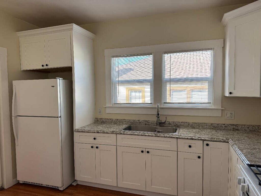 3-bedroom, 2 bath charming home with abundant windows and high ceilings for extra light and character. Recently interior painted, remodeled kitchen, full and half bath updated. Inside laundry, fenced yard/patio and driveway parking (no garage). Close to schools, hospital downtown and freeway access.