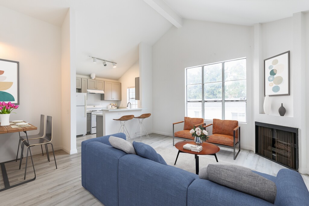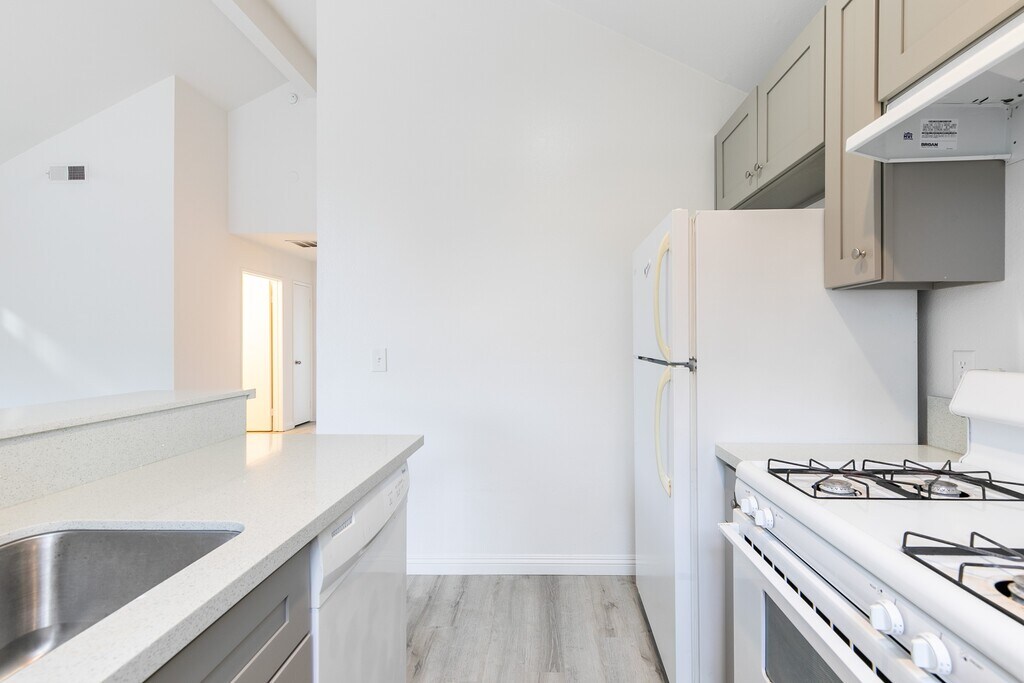 Step into California living with this 2-bedroom, 2-bathroom unit nestled in a prime location. Elevated on the second floor, this unit boasts soaring high ceilings and abundant windows, flooding the space with natural light and creating an airy, open atmosphere. Enjoy the privacy of no adjacent joining walls with neighboring units, providing peace and tranquility in your own sanctuary. Park effortlessly with 2-car tandem gated parking. The kitchen is a complete with modern shaker-style cabinets, and quartz countertops, complemented by essential appliances including a stove, microwave, dishwasher, and refrigerator. Stay comfortable year-round with central heating and air conditioning controlled by a Nest thermostat, while a charming gas fireplace adds warmth and ambiance. Both bathrooms feature elegant quartz countertops and vanities, elevating your daily routine. The unit features feature hardwood floors throughout. For added security and convenience, an intercom system is installed. This exceptional unit is located within walking distance of restaurants, shops, banks, 24-hour fitness centers, and Trader Joe's, with easy access to the 405 and 10 freeways. With just a one-month deposit required, contact us via email or phone to schedule a viewing today. Thank you!
