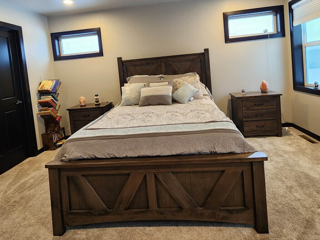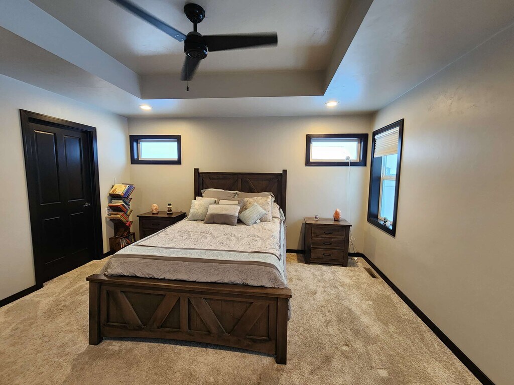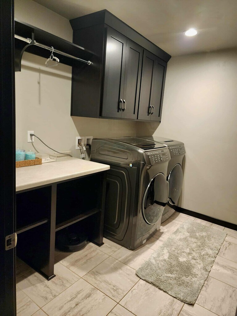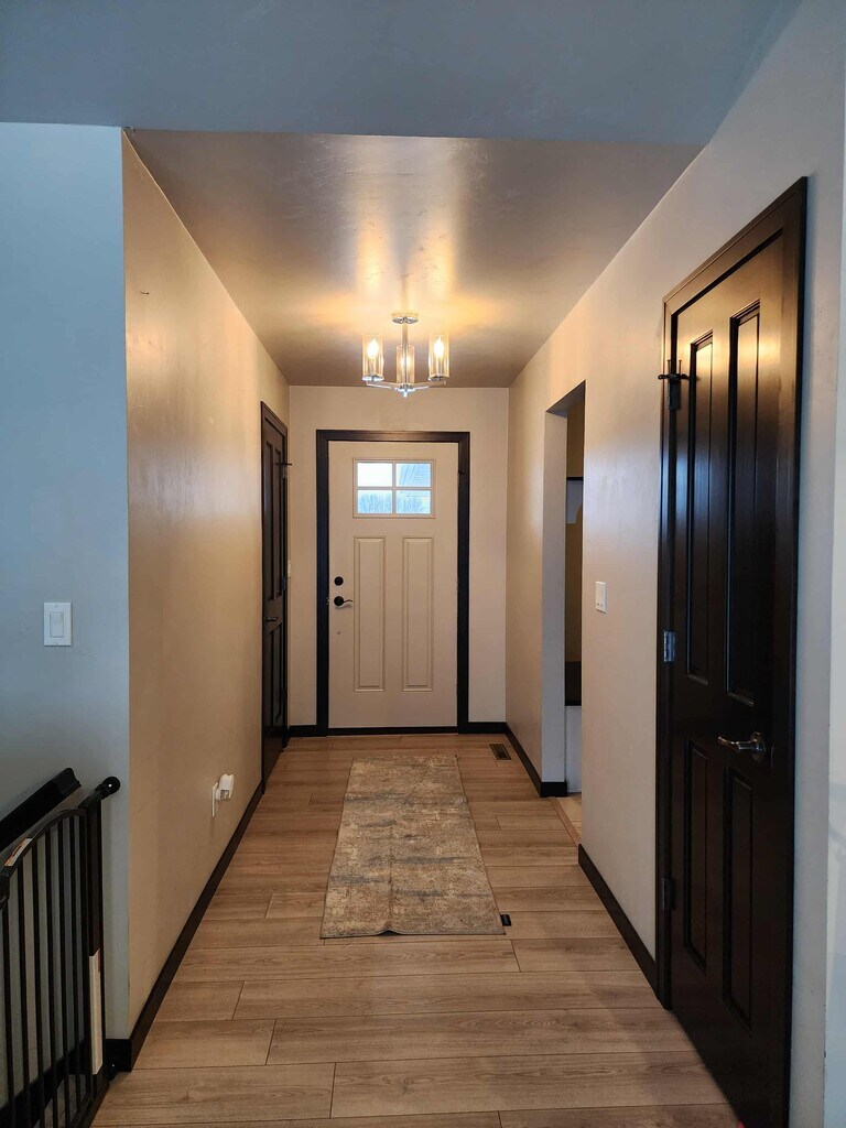 This modern home offers a peaceful retreat with plenty of room to relax and recharge. Built in 2017, it sits on a partly wooded more than half acre lot that gives you real privacy while keeping you close to everything in De Pere. The large windows bring in beautiful natural light, and the open-concept layout feels bright, spacious, and welcoming. The home includes a three-stall garage, a large kitchen island, and a cozy fireplace. The kitchen is one of the best parts of the home, with generous storage throughout, two extra closets, a walk-in pantry, and a layout that allows you to cook comfortably. The dining area is oversized and includes a transformable table that expands up to 12 feet, making it easy to host meals, work, or spread out projects. The split bedroom design gives everyone extra privacy. The primary suite features a connected walk-in closet that flows directly into the bathroom and then into the laundry room, which makes daily routines simple and efficient. The partially finished basement adds another spacious area for living or working, complete with egress windows for natural light. If needed, rooms can be set up as an office to accommodate remote work. The home feels calm and grounding. Its quiet, clean, and surrounded by nature while still offering modern convenience and quick access to town. There is plenty of storage throughout the space, inside and out, giving you room to settle in and feel at home during your stay.