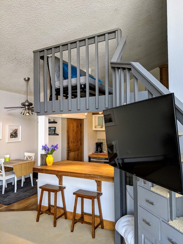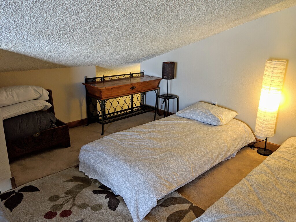 This is a beautiful one bedroom/one bathroom condo and open 2nd floor loft and 20 foot ceilings on Buffalo Mountain. Fantastic views, great proximity to town, and centrally located in Summit County. Access to forest land is literally out the back door! There is a queen bed in a private bedroom. The loft has 2 twin beds & a full size futon. Perfect for a friends/family getaway, a working couple, or couple with children. Loft would be great for a home office, or serve as a second bedroom or space for visiters. The Summit Stage shuttle is right outside the condo if you'd prefer a free ride about town. This home comes fully furnished and stocked with all cooking essentials. W/D are in the unit, along with large deck (~15 ft x 7 ft) with a grill. Utilities, High Speed Internet, and Cable and 2 permitted parking spaces are all included in rent! This listing is for a full year (12 months) or longer. If you prefer to rent this unfurnished, that can be discussed.