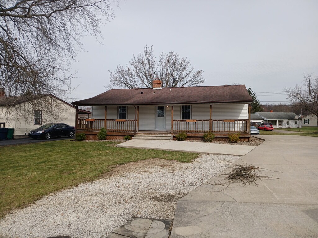 Super nice 2 bedroom ranch, full basement with laundry hook-ups for gas or electric dryer. 2 car detached garage with electric & openers. Hardwood floors throughout, linoleum in the kitchen & bath. Gas heat & central air. Some pets ok. Great porches, front & rear. Ceiling fans in both bedrooms, living room and dining room. Great neighbor with a nice lot. Master bedroom has his & her closets. Kitchen & bath have both been remodeled. Basement is dry. Call Scott for more info.