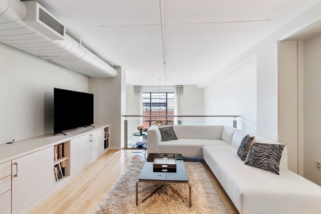 Spacious and turn key! This modern loft features over 2300+ square feet, two floors of living, and includes 2 bedrooms, 2.5 baths, and garage parking. This property features open concept living with fully renovated kitchen, formal dining, and oversized living room. This unit has dramatic windows and is flooded with natural light. Second floor is a full primary suite complete with sitting room, built in desks with storage that is perfect for working from home. Primary suite also includes additional full bathroom with tub and stand up shower, as well as additional built in wardrobes and shoe storage. Unit features central air, laundry in unit, remote control blinds, and beautiful wide plank wood flooring. Building is a concierge building and located in Seaport District with easy access to world class restaurants, museums, the harbor walk, highway access and public transportation.