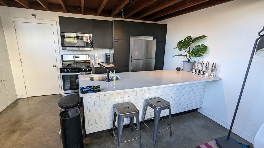 Really cool downtown Provo apartment. Recently built out in a mid century car dealership that has been converted to office, studio, event space and residential. Super close to a UVX bus stop and only a few blocks from the front runner station. Easy access to I-15. 4 blocks south of center street and tons of great food and entertainment options. Utilities and internet are all included in the price of rent so no fees above and beyond rent. Heated floors, motorized blinds, nice countertops and finishes. Come check the space out today and see if it’s a good fit for you! Discounts on Provo Rec Center passes, UTA passes and ask us about our home buyers program if you are saving up to buy a house! Pictures show when it was used for an office space but most tenants have used it as an apartment.