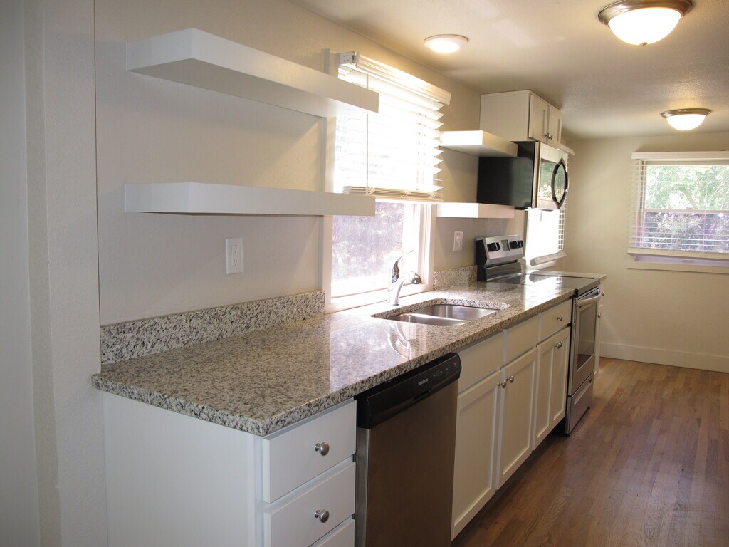 Very cute 1 Bed 1 Bath duplex, upstairs unit. Remodeled in 2020, throughout. Secluded and quiet, close to walking, hiking, and biking trails. Plenty of off-street parking. Tenant pays G/E. Washer/Dryer in unit. Month to month lease. No Pets. College students OK.