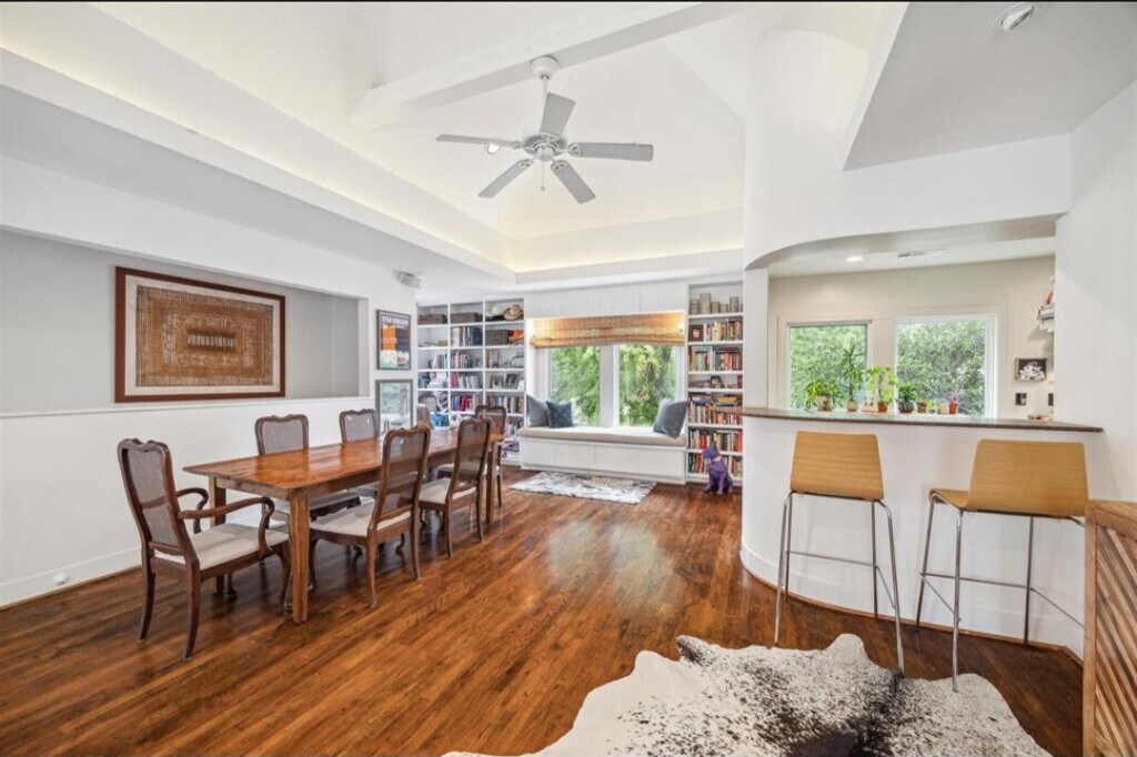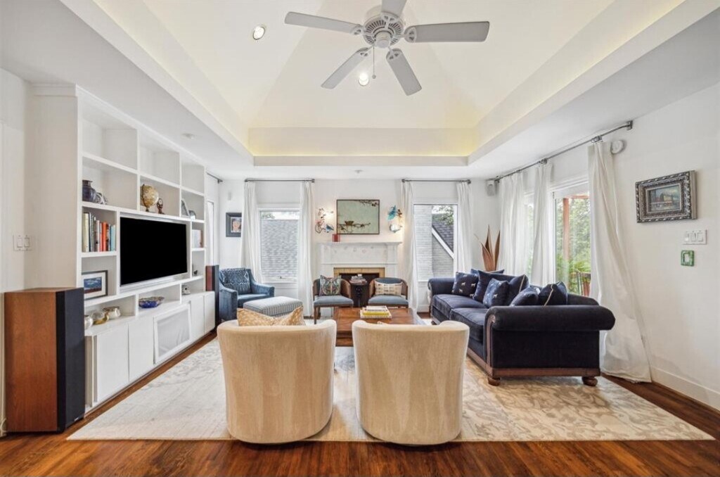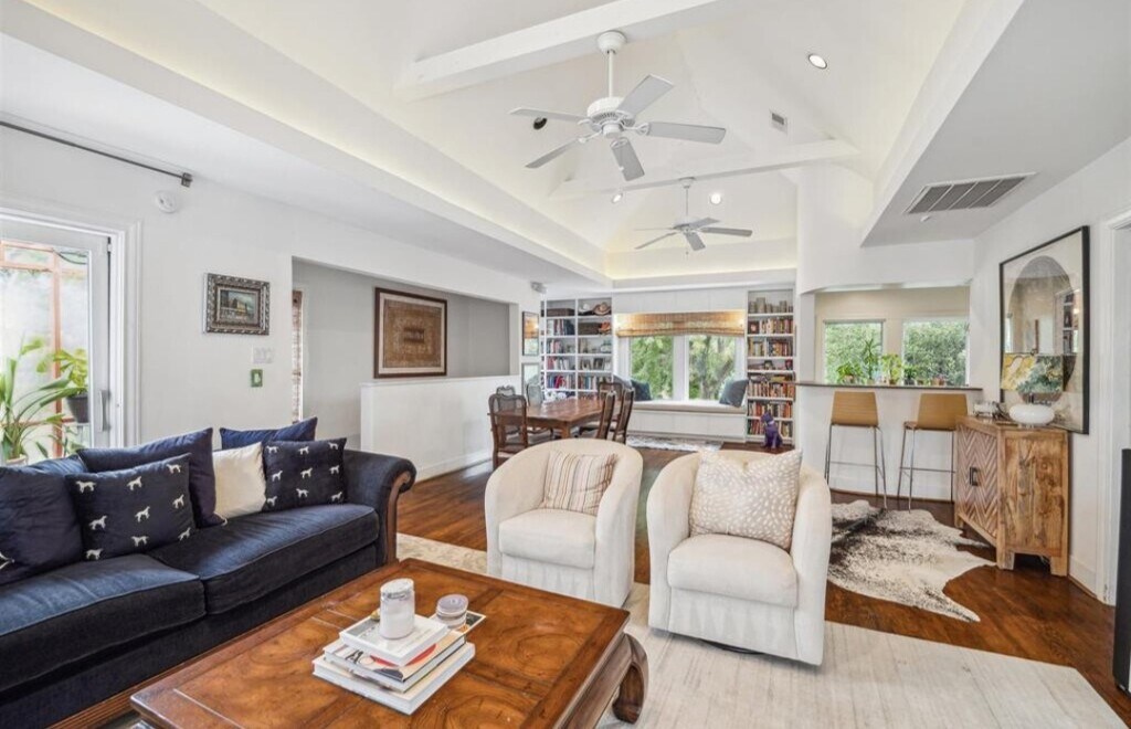 Bright, airy second floor apartment in house on a gated corner lot. Located in the most coveted part of Montrose! Easy walkability to popular cafes, wine bars, yoga studios, and retail/resale shops. 10 min drive to downtown and med center. Windows draw natural light from all sides, leafy views & breezes. Architecturally-stunning lofted ceiling; bar and screened porch for intimate dinners/morning coffee. Open floorplan, spacious bedroom with 2 walk-in closets. Custom Built-ins throughout. Shared side yard perfect for drinks around the fire-pit. Shared use of washer and dryer on first floor. Designated off street parking spot. Equipped with Sonos speakers throughout unit.