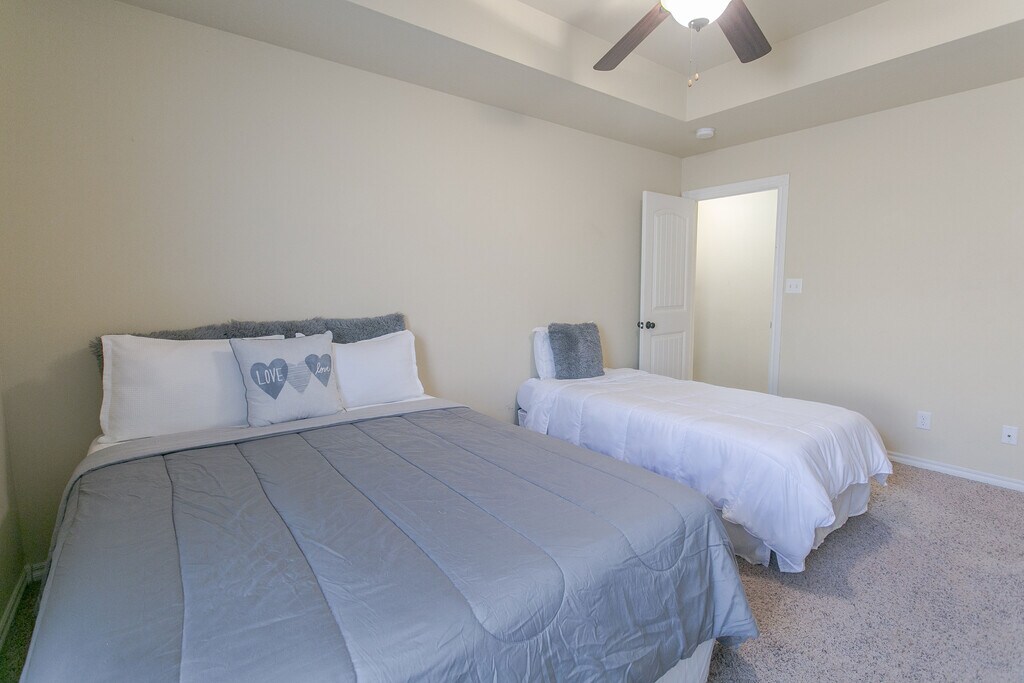 Step into your worry-free haven! This charming 2-bedroom home with 4 beds, 2 baths, and a 1-car garage is conveniently located minutes from Cameron University, Comanche Hospital, and Fort Sill. Enjoy peace and tranquility in this family-friendly space, fully furnished for your comfort. Rest assured with our Smart Home Security System and relish the added privacy of a fenced property.