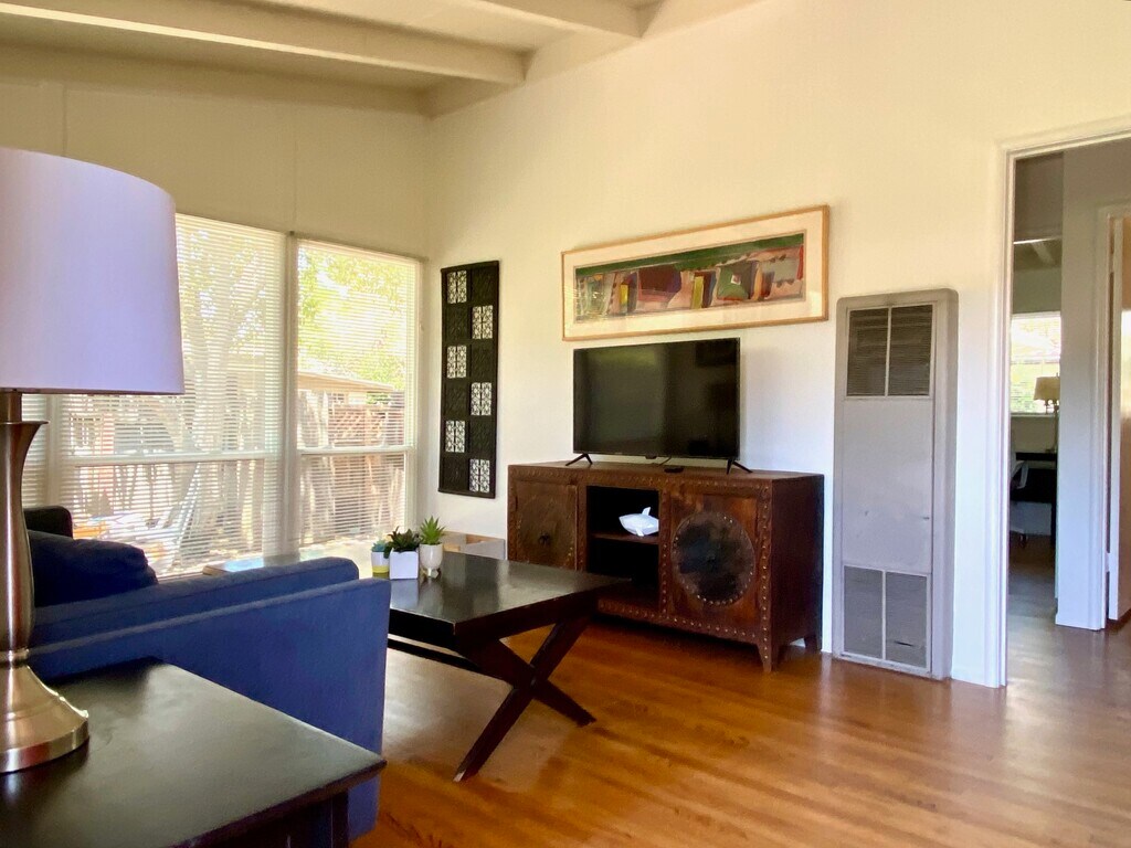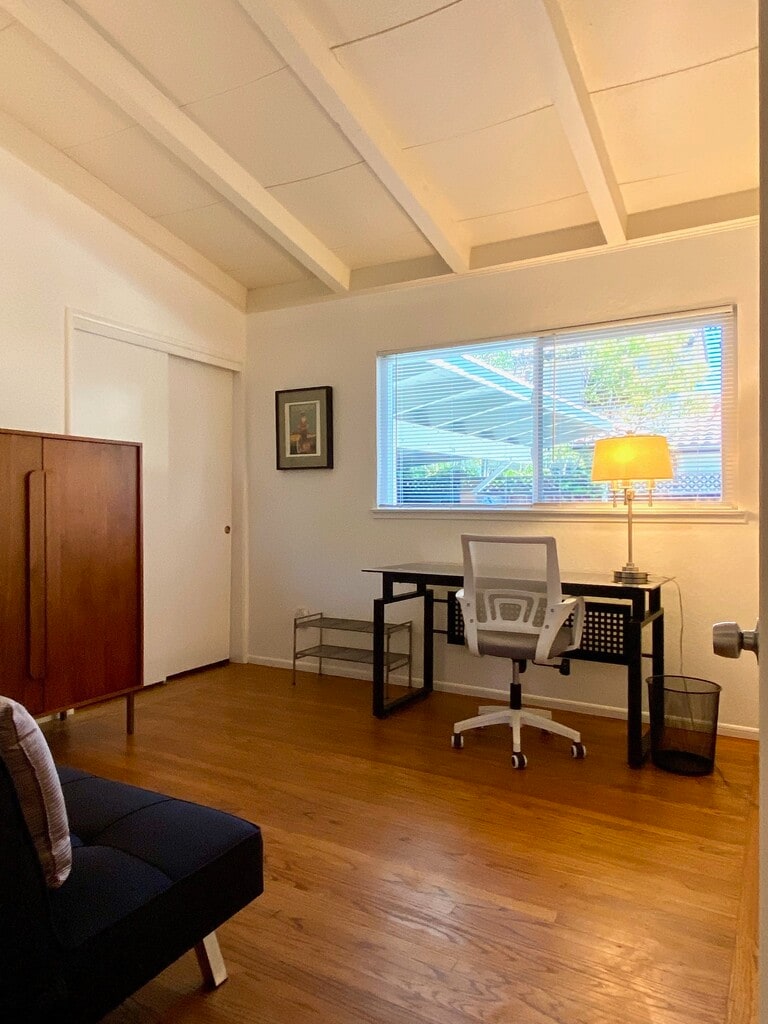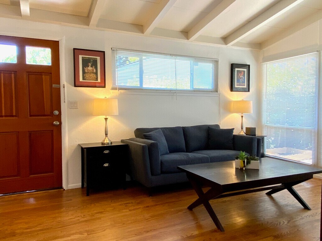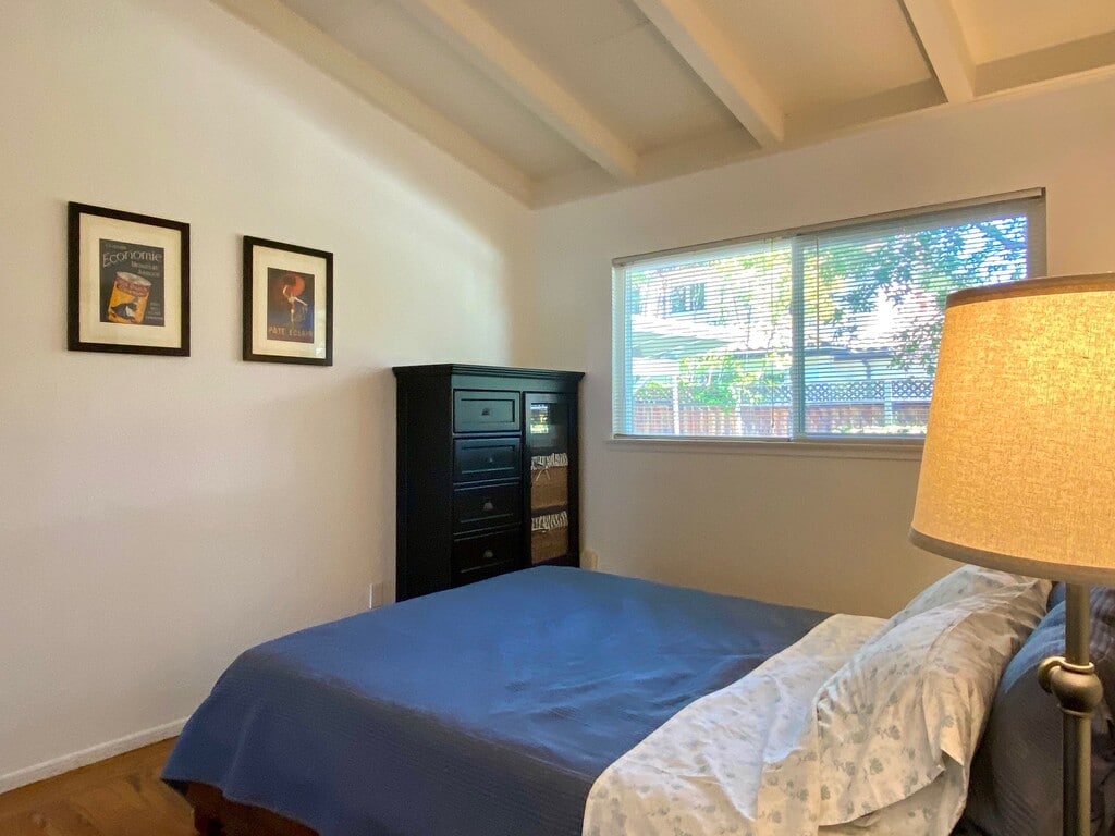 Beautiful and spacious two bedroom unit. Fully furnished and decorated in a quiet one-story 4-plex house. Situated in Midtown Palo Alto, it is a 10 min. drive and 20 min bike ride to Stanford University, downtown Palo Alto, Mountain View, and more. This 4-plex is surrounded by single family homes and provides the comfort of a home, instead of condo or apartment. Two bedroom suite includes a living room, 2 bedrooms, full kitchen, one bath, 2 large closets, and an extra storage shed. Coin-operated laundry machine and dryer conveniently located on the premises. Tastefully furnished, including furniture, appliances, bedding, and kitchen essentials. The rent includes: electricity, water, garbage, gas, gardener. All you have to do is bring your suitcases and move in!