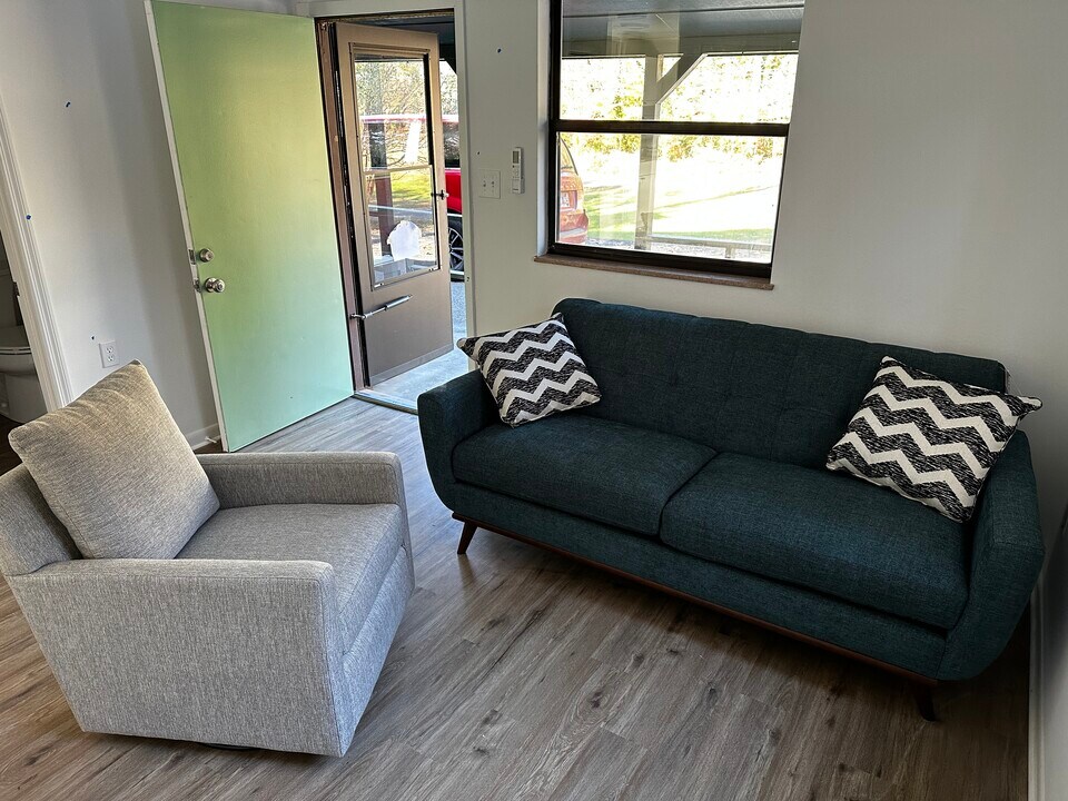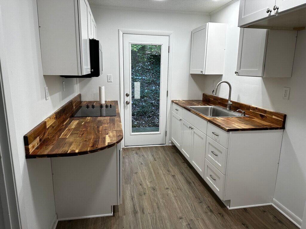 Fully Furnished 1BR – All Utilities + WiFi Included – Ground Level Newly remodeled 430 sq ft furnished 1BR with everything included. Bright kitchen with glass patio door, butcher-block counters, full-size fridge, 4-burner stove, and combo microwave/air fryer/convection oven. In-unit full-size washer/dryer, LVP flooring, carpeted bedroom with closet, ceiling fan, and mini-split heating/cooling. Full bath with tub/shower. Reserved parking at your front door, covered patio, and no stairs. 6–12 month lease preferred.