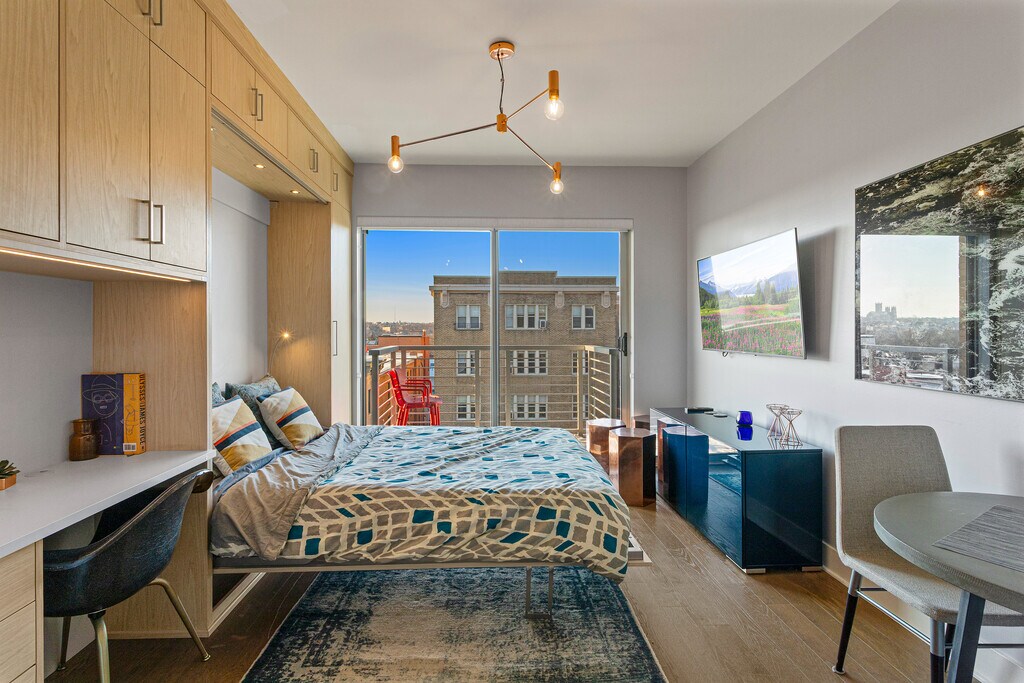 Welcome to Ontario 17, a contemporary residence in the heart of Adams Morgan. This fully furnished, move-in-ready studio offers comfort, flexibility, and convenience. The unit features a custom California Closets wall bed and desk system, creating an Airbnb-style setup ideal for working from home. Hardwood floors, 9-foot ceilings, a modern kitchen, and a private balcony facing Columbia Roadcomplete the space. Furniture, kitchenware, and bedding are all included. Just bring your suitcase. The building offers concierge service, elevator access, and well-maintained common areas. Step outside to top neighborhood dining and essentials including Lapis, Tail Up Goat, Tryst, Harris Teeter, and Meridian Hill Park. The Woodley Park–Zoo/Adams Morgan Metro (Red Line) is about a 10-minute walk, with multiple bus routes nearby. Highlights Fully furnished and move-in ready Airbnb-style setup, ideal for WFH New California Closets wall bed and desk Private balcony In-unit washer/dryer Hardwood floors and 9-foot ceilings Utilities (electric and internet) coordinated through owner Lease Terms Renter pays for electric and internet. Utilities are already set up through the owner; tenant reimburses monthly. First month’s rent and security deposit due before move-in.