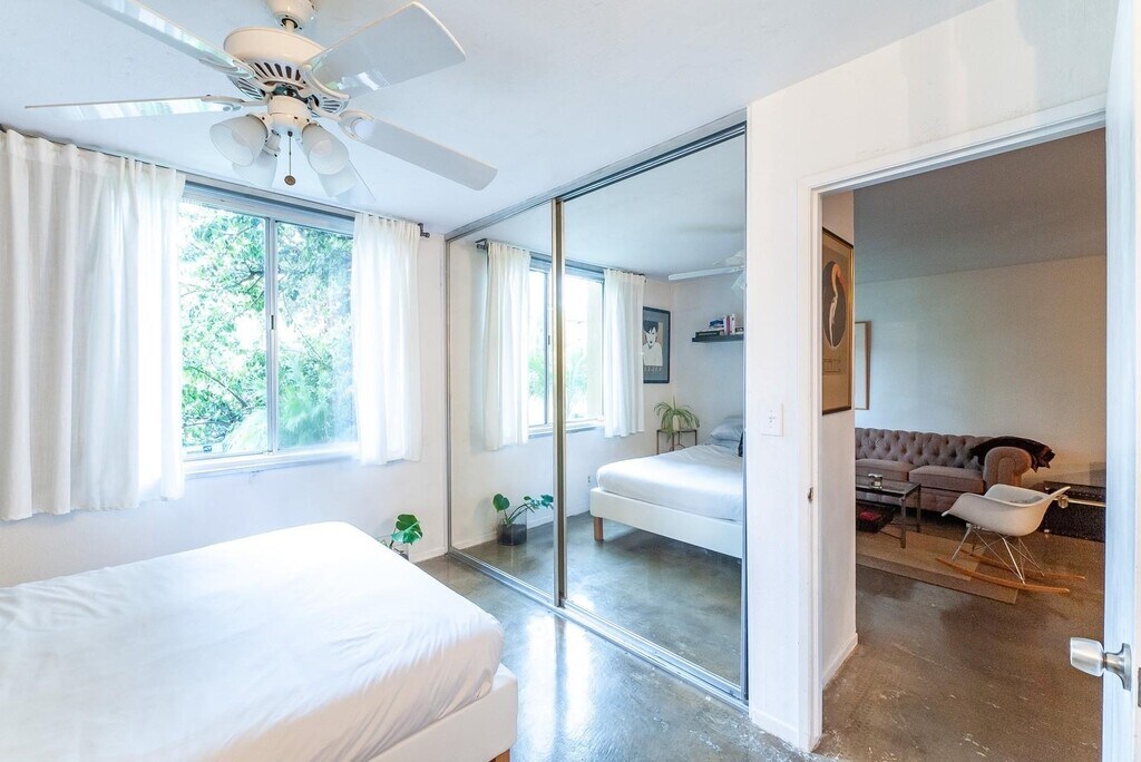 FULLY FURNISHED Bright, spacious, modern 1 bdrm + 1 bath condo. 1 car garage parking (included in 1 year lease). Lower Front unit. Polished cement floors throughout for a modern lofty style. Custom quartz counters in the kitchen and modern fixtures and finishes throughout. Lots of closet storage. Private balcony. Electric heat system, wall AC unit in the living room and ceiling fan in bedroom. Tenant's only basic utility expense is electricity. Internet & all other utilities included in the rent. Pet friendly! Non-smoking property. - AVAIL EARLY MARCH! Quiet Controlled Access Condo Building Located in Rampart/KoreaTown. Close to Everything! Easy access on off the 101 and buses on the corners. Short commute to Downtown, Wilshire Center, Echo Park, Kaiser, Children's Hospital. Between Beverly and 3rd, Walk to Target, SmartFinal, Starbucks, etc. Minimum 4 month stay