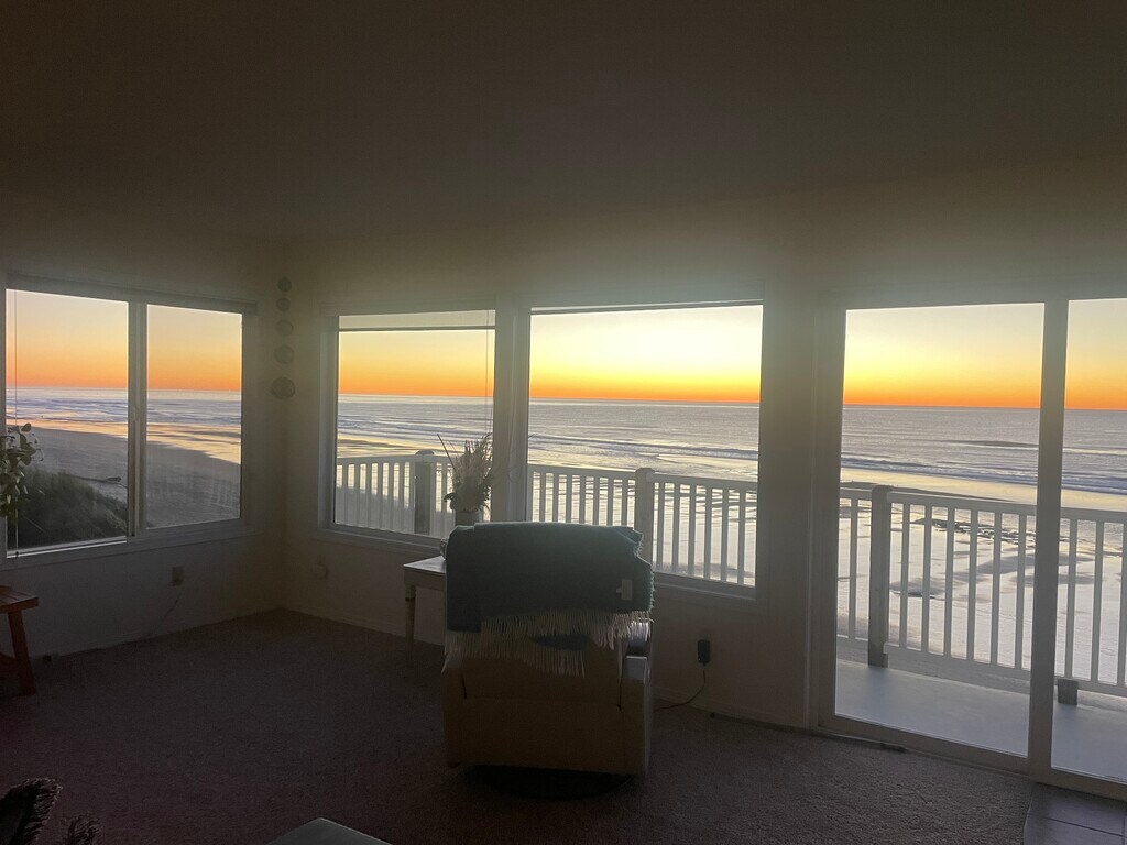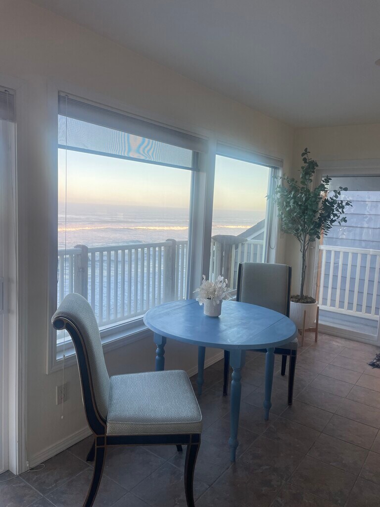 This 2-bedroom, 1-bathroom smoke/pet free property, 1100 square feet of exclusive living space. The furnished living room is spacious, with a gas stone fireplace, providing a comfortable area for relaxation, offering unparalleled 180-degree ocean views and a private balcony. The master bedroom features two full closet spaces and natural light, and fully adjustable queen bed. The second bedroom has a full-size bed with a view of Devil's Lake. The bathroom includes solid surface countertops, double sinks, and shower/tub combination. The unit comes equipped with a washer and dryer for added convenience. The open kitchen is fully furnished with cookware, dishes, and utensils. The exterior is well-maintained, with close in beach access and nearby dining, amenities. This property is ideal for an individual or couple seeking a furnished living space with essential close-in amenities.
