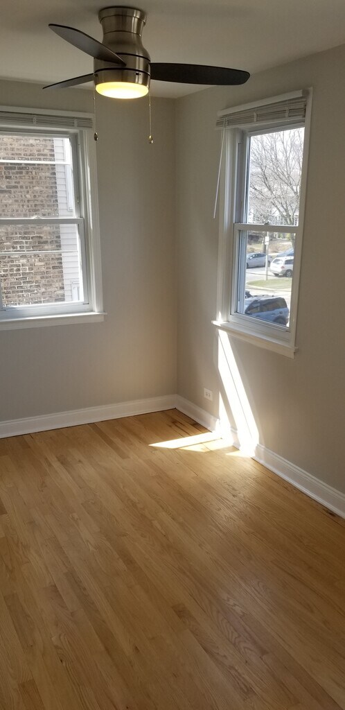 Amazing 2nd floor walk up with tons of natural light from all newer windows. Hardwood floors everywhere other then the tile in the 2 spacious bathrooms and kitchen. The bathrooms both have new vanities with tons of storage. One bathroom has a whirlpool tub the other has a walk-in shower. The whole apartment has new light fixtures. The bedrooms and living room all have new ceiling fans. It has central air and in unit washer dryer. On site parking is available for a fee. It is located roughly one block from Julian Middle School, 4 blocks from Fenwick High School and a few blocks from Jewel-Osco. Credit scores of 700 or better required. No pets allowed. Its a non-smoking building.