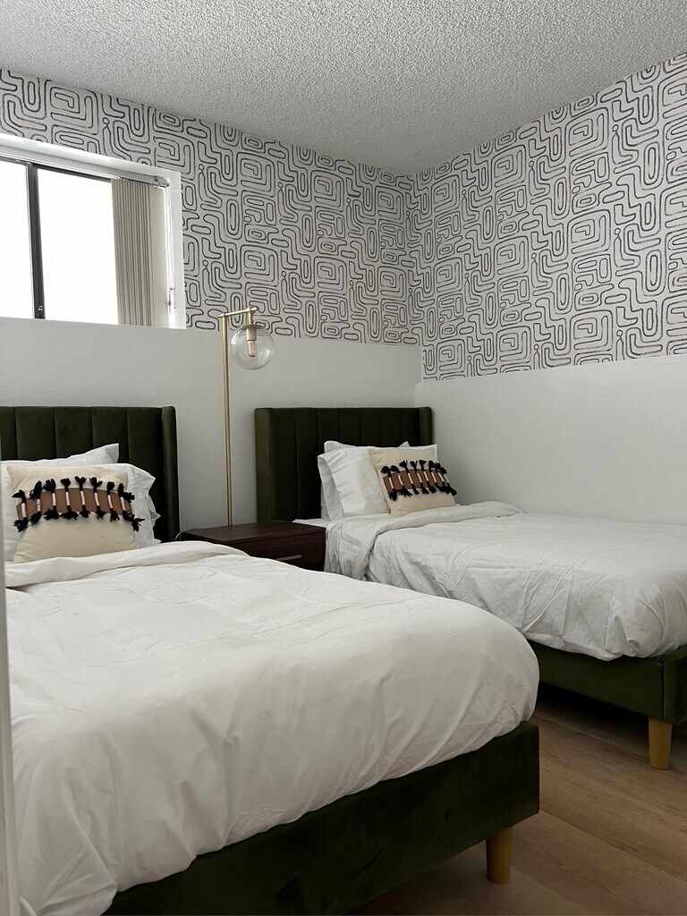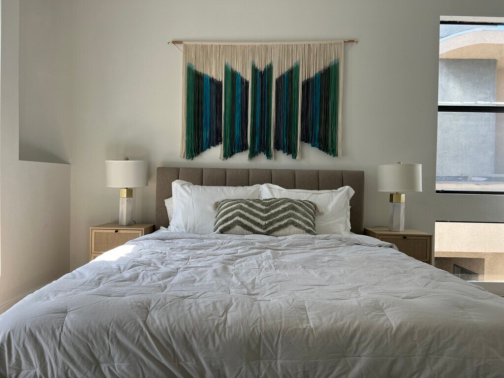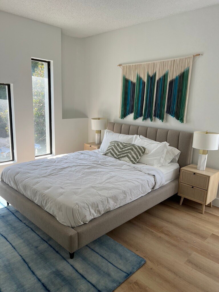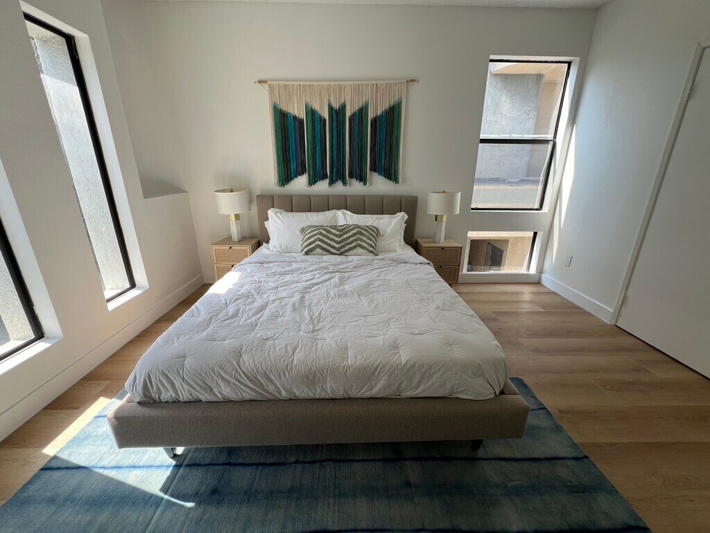 This unit is completely furnished and the rent includes all utilities. Move- in ready! Short term stay welcome! Welcome to your bright and airy sanctuary nestled in the heart of West Los Angeles/Santa Monica! This newly renovated 3 story condo- style unit is flooded with natural light, illuminating the stunning hardwood flooring throughout, creating an inviting and uplifting atmosphere. This inviting home offers direct access from the garage, a private rooftop patio with BBQ grills and charming patio lights, and the convenience of In-unit Washer and Dryer (not pictured)! The kitchen comes with new shaker-style cabinets, quartz countertops, with appliances including microwave, oven, dishwasher, and refrigerator. Bathrooms have been tastefully updated with new vanities and shower enclosures. Enjoy the comfort of central AC with a Nest thermostat and a cozy gas fireplace in the living room. The huge master bedroom stands out with its high ceiling, large windows, extra bonus den, and two walk-in closets. Throughout the unit, you'll find new hardwood floors, ample storage, and fantastic natural lighting, also a patio off the living room. The community is pet-friendly, welcoming your furry friends. There are 3 Bedrooms which have the following dimensions: (Second Floor) Master Bedroom13'3"x12'10", (Second Floor) Second Bedroom 8'9"x10'5", (Basement) Third Bedroom 8'9"x 10'5" (with laundry or closet). This gem is located in a quiet, 8-unit building in a peaceful neighborhood just a few blocks from the freeway, on a picturesque tree-lined street on the Westside. Commute with ease with close proximity to the 405 and 10 freeways, ideal for both local travel and weekend getaways. Enjoy the convenience of being within walking distance to Trader Joe's, breakfast spots, banks, fitness centers, restaurants, and more. Don't miss out on this exceptional living space email or call to schedule an appointment to see the unit today!
