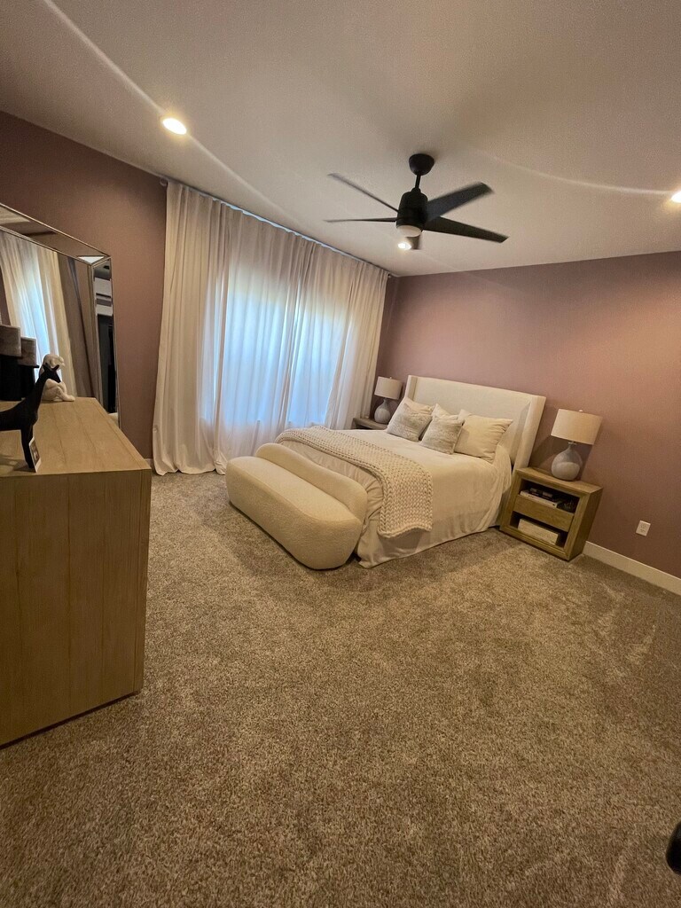 Three large bedrooms with generous walk-in closets, two full bathrooms. Amazing master suite with his and hers closets, app-controlled black out shades, connected to an en-suite bathroom with dual sinks and a luxurious shower. Separate efficient heating and air in each room to tailer to each persons temperature preference and top-down cellular shades on every window for privacy. House has solar that currently offsets the entire electric bill. White shaker cabinets with white subway tile and gorgeous quartz countertops. High end appliances with gas range. Back of house opens up to a beautiful pond, willow tree, and views of Prescott Peak and a low maintenance backyard creating an incomparable oasis. Safe, peaceful neighborhood. Ample storage in hall closets. Small pet allowed with pet deposit approved on case by case basis, tenant pays for electric, gas, parks fee, and yard maintenance. Trash and solar paid by homeowner.