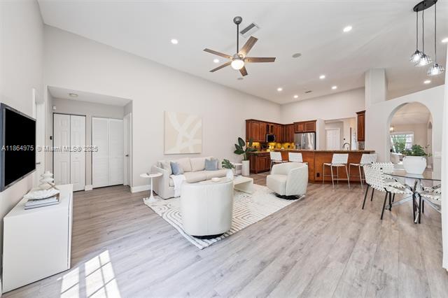 Located in Weston Hills CC, a gated golf-course community with manicured streets, lakes, and neighborhood parks, including Jardin’s playground, basketball and pickleball courts, and a shaded gazebo. This Covington Five has a 2023 roof and a circular paver drive. A triple-split plan delivers 5 bedrooms and 3.5 baths under volume ceilings. A light-filled foyer opens to formal living and dining. The kitchen features wood cabinetry and granite counters and flows to the family room for easy entertaining. The primary suite offers a sitting area, two walk-in closets, and bathroom with dual sinks, a separate tub, and a shower. Outdoors, enjoy a secluded garden retreat. Minutes to top-rated schools, dining, the Cleveland Clinic, and FTL Airport. 2587 Jardin Ct # 0 WESTON, FL 33327 ML#: A11864975