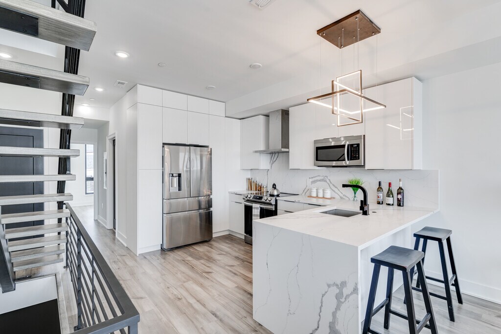 Welcome to Fishtown's latest and greatest townhome development project, Hagert Street Estates. These Bi-level condos come equipped with bespoke amenities and selections including, but not limited to, one-car private parking spot, private outdoor spaces (patio, kitchen balcony, master bed juliet balcony and expansive roofdeck and unobstructed skyline views). Samsung appliances and a 16' ceiling on the first floor of the Upper unit, giving the living area an expansive flair. A floating staircase and glass railings will greet you upon entry. Within walking distance of Fishtown's most desirable cafes and restaurants. Minutes from I-95, I-676, and the Philadelphia International Airport. Contact us for a private tour. Listing photos of similar listing. ONLY FIRST AND SECURITY TO MOVE IN! (offer expires soon!) PRIVATE PARKING SPOT PRIVATE ROOFDECK PRIVATE PATIO 16FT CEILING