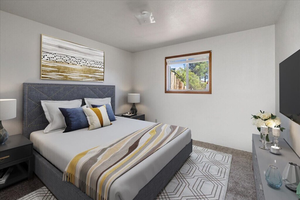 This spacious 2-bedroom, 1-bath unit in a multi-family building features a large living room, a full kitchen, and a front patio with views of mature trees. Appliances are included, including a refrigerator and range/oven. The unit has central AC and heating, carpet in the living room and bedrooms, and tile in the kitchen and bathroom. While there is currently no on-site laundry, a laundry facility is planned for the future. The unit is unfurnished, and photos with furniture are for illustration only. The property is directly managed by the owner, with no hidden fees, and owner support is available within 24 hours for any issues. Rent is $1,300 per month, with utilities of $150 that include water, sewer, trash, and high-speed internet. The security deposit is $1,450. Cats and small dogs are welcome (up to two pets), with a one-time pet fee of $200 per pet due at move-in; there is no monthly pet fee. The move-in cost for a 12-month lease is $2,900. Flexible lease options, including month-to-month or 6-month terms, are also available.