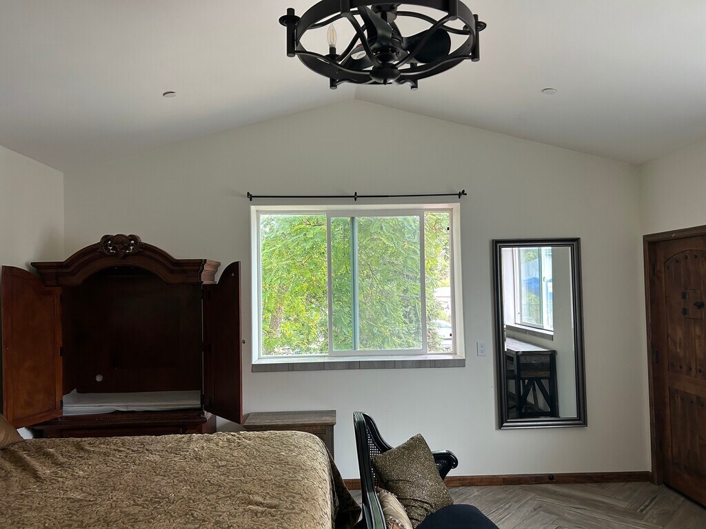 Be the first to rent my New beautiful fully furnished studio facing the Topa Topa mountains & your 40 foot balcony on the 2 nd Fl! All appliances are brand new. You have a king size bed, a beautiful new kitchenette, armoire, 3 stool bar, 8 function air fryer, microwave, coffee machine, smart TV. My favorite is the shower a 2 headed luxury vacation. That’s what I call it! A 2 house walk to the Trolly, Bus and bike path. 1 car parking on driveway plus street parking. We have an orange orchard, nectarines, Ojai pixie, grapes, lemons, blood orange and a New ruby red grapefruit! All utilities paid. All you need to pay for is your cell phone and food. If you prefer Unfurnished , it is negotiable. CARS rental lease month to month.