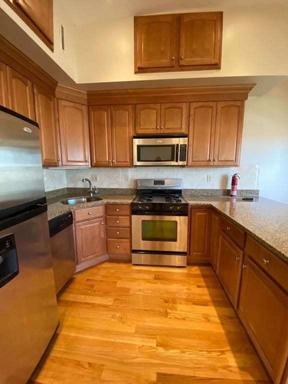 Beautiful skylit sunny penthouse condo with 10'+ ceilings!! 2 bedroom unit offers a spacious open floor plan with fully applianced working kitchen, breakfast bar, granite counters and stainless steel appliances; living room with gas fireplace. Both bedrooms have great closet space and additional storage above. This well laid out unit has a Jacuzzi bath, in-unit laundry, and additional private storage in the basement. Did I mention there is a private ROOF DECK with city views!!! Best deal on the market and conveniently located on a lovely tree-lined street within blocks to the lawn on D, Seaport area, South Station and Logan airport. Don't miss out on seeing this one.